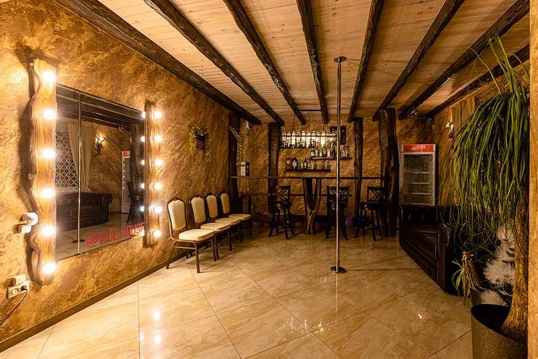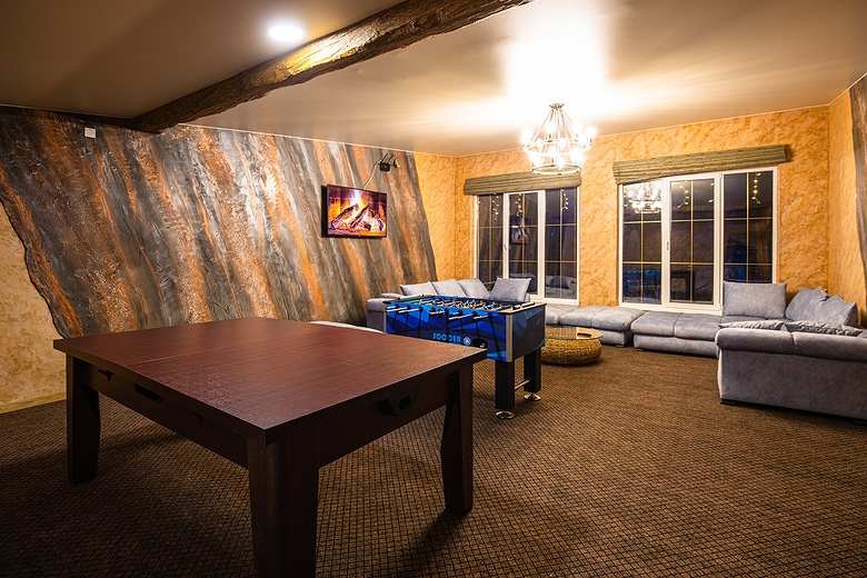 Дом состоит их четырех уровней, на двух из которых созданы все условия, чтобы провести любое мероприятие и хорошенько отдохнуть. Для взрослых мероприятий оборудован стриптиз-зал, танцевальный зал с лазерным шоу, дым-машиной, микшером, русским премиум- бильярдом (12 фут), «американкой» (pool, 9 фут), настольным теннисом, beer-pong и караоке с двумя микрофонами.