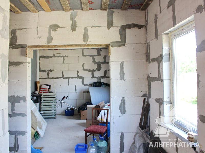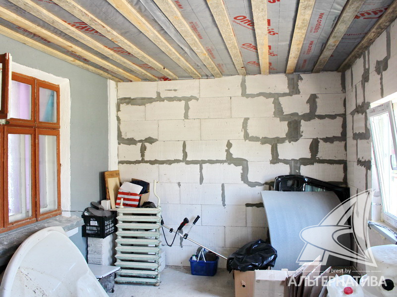 Стены: материал - шлакобетонный блок и газосиликатный блок. Кровля: шифер. Фундамент: ленточный монолитный; материал - бетон.