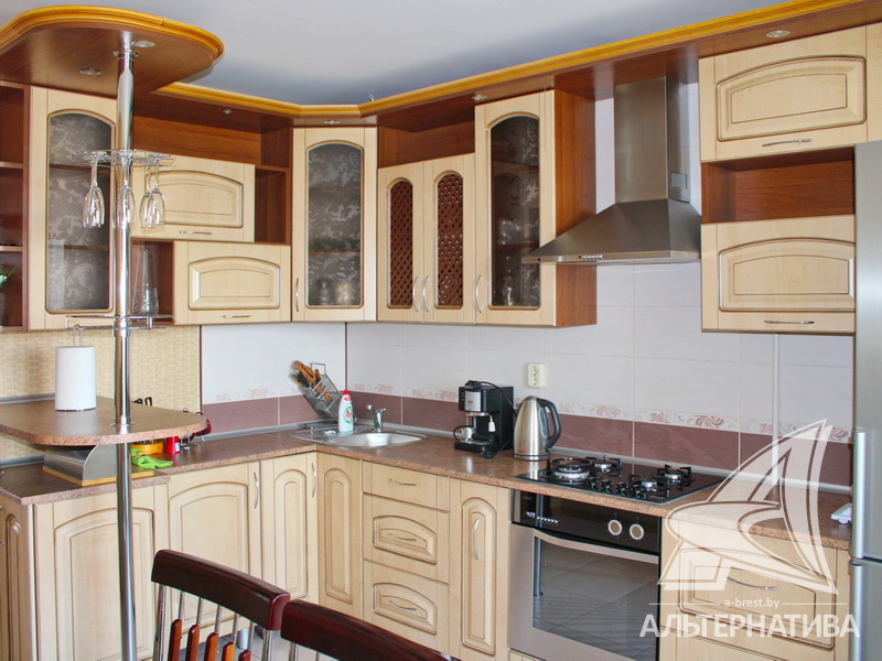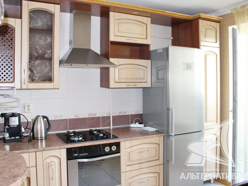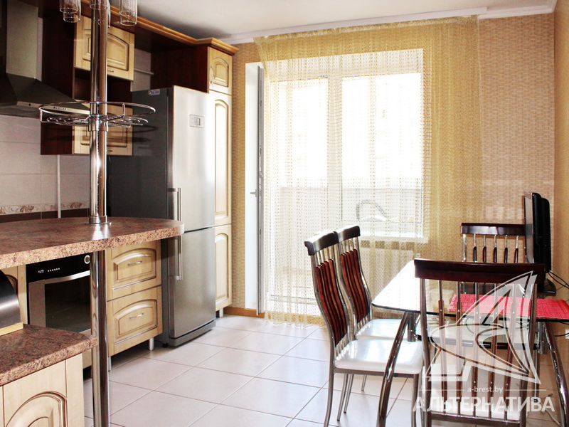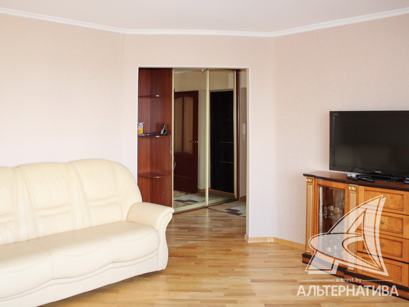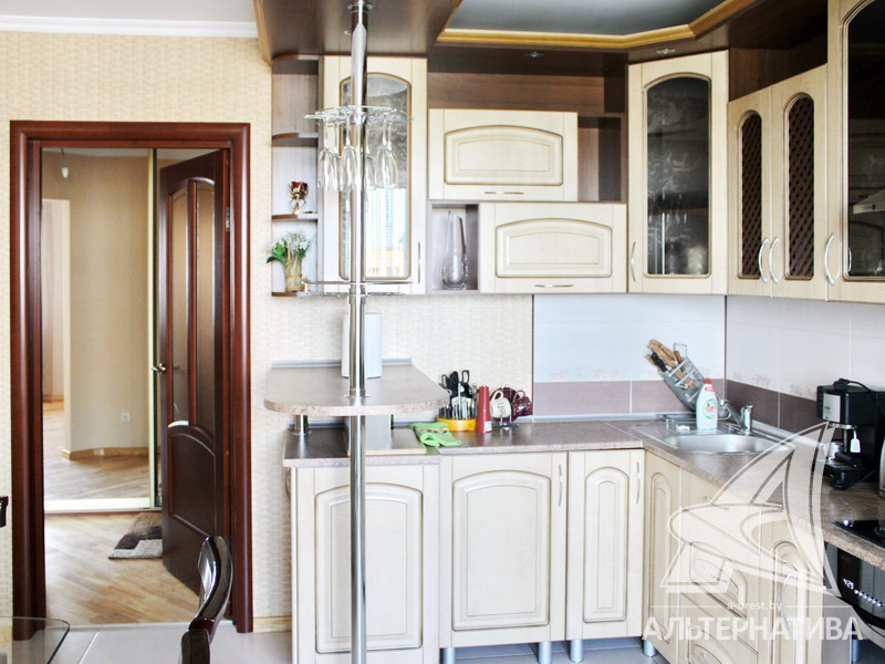 2-комнатная квартира, г. Брест, ул. Московская, 2009 г.п., 7 / 9 кирпич, 59,5 / 54,5 / 27,9 / 12,5, санузел раздельный, две лоджии застеклены, стеклопакеты, межкомнатные двери - массив (ясень), входная дверь металлическая, потолки - снежка (2,55 м), полы - паркетная доска, ламинат и плитка, в санузле современная плитка, телефон, домофон, система видеонаблюдения. Встроенный кухонный гарнитур, шкаф-купе в прихожей, шкафчик в ванной, шкаф на лоджии. Квартира с хорошим ремонтом. Чистый подъезд. Один грузопассажирский лифт. Дом расположен в глубине двора.