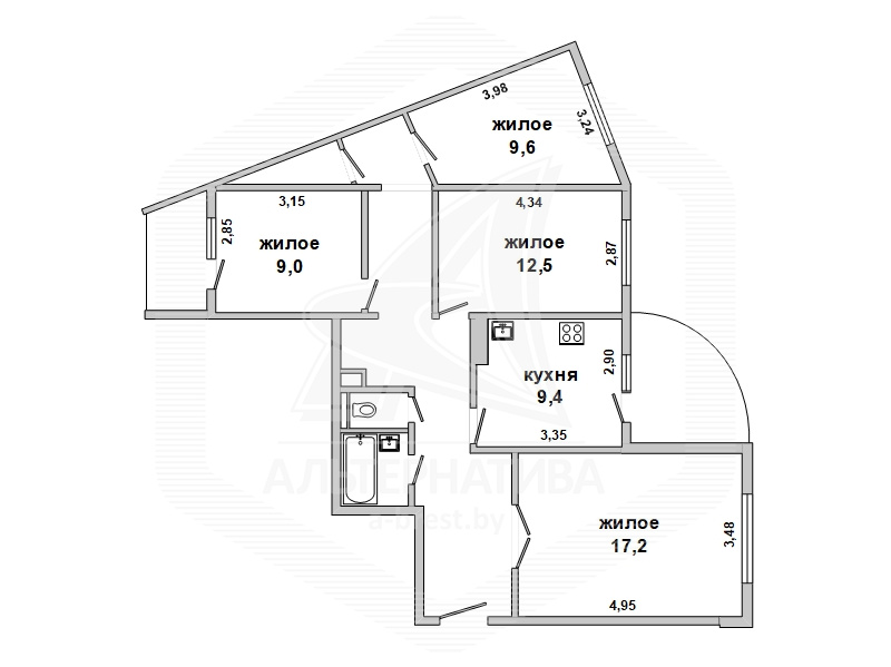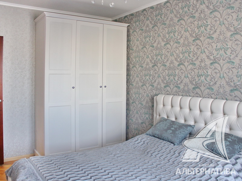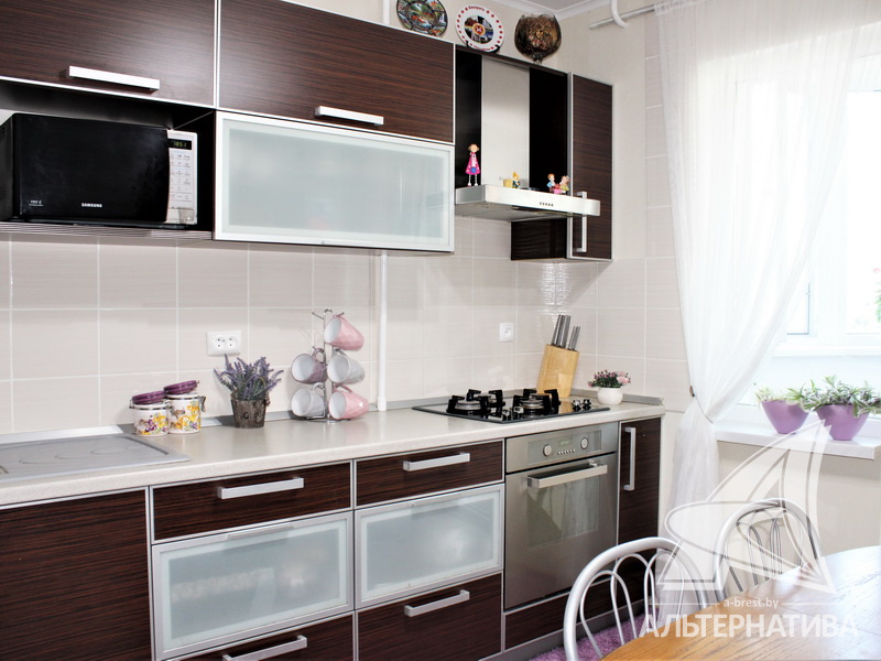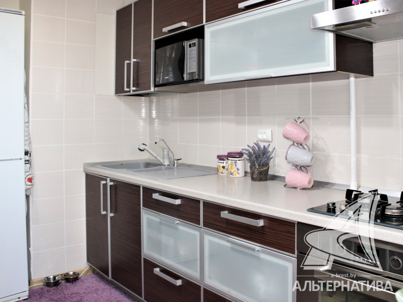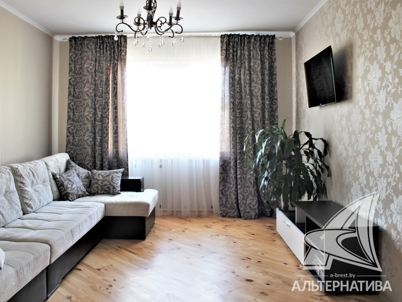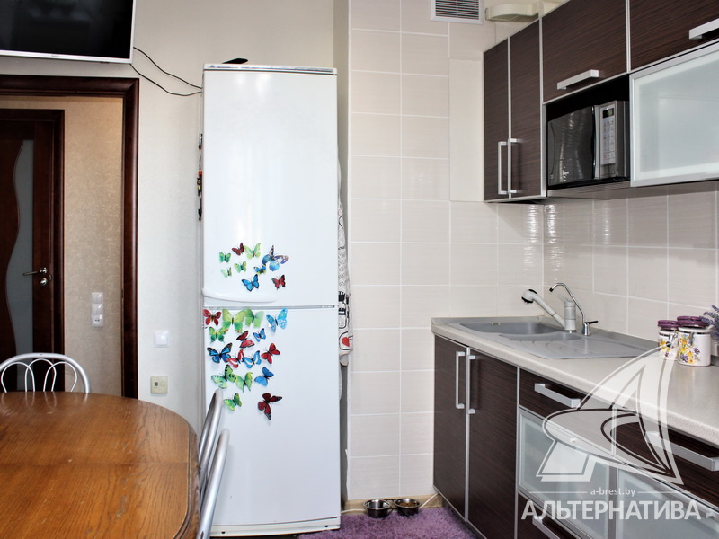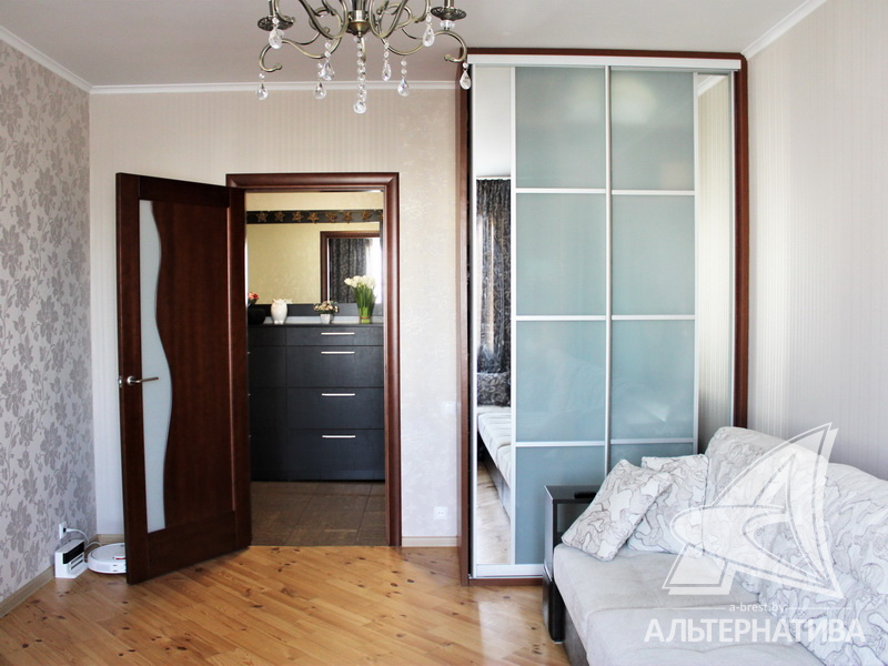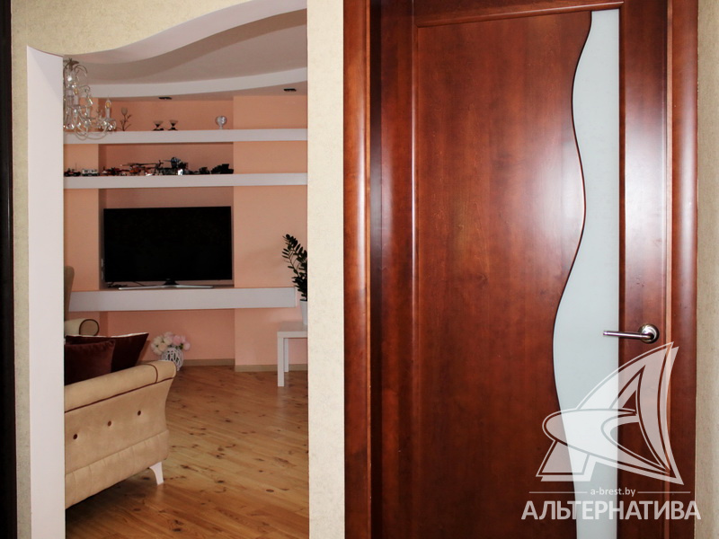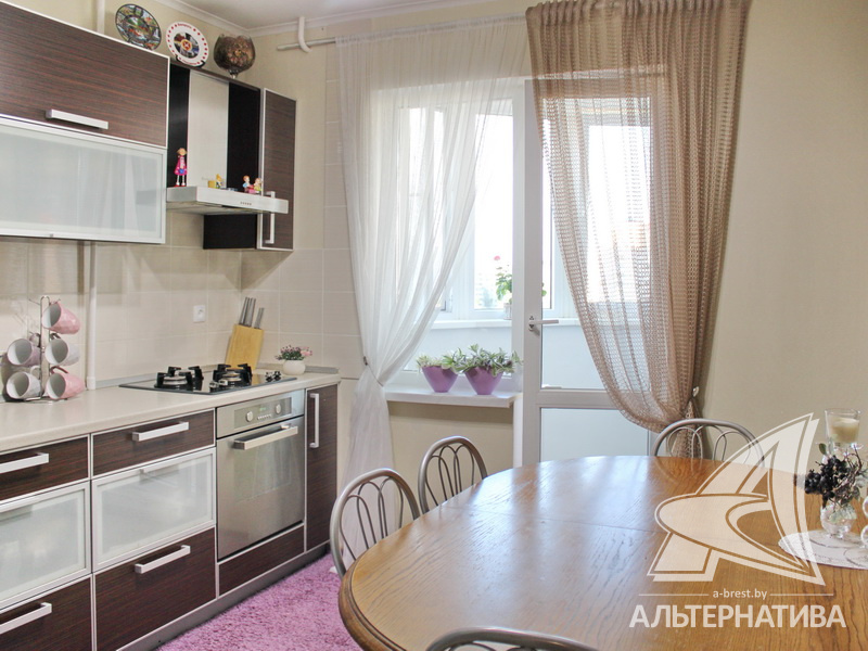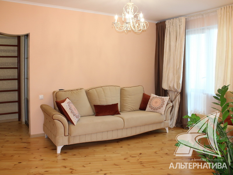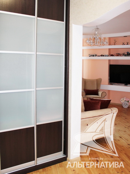 4-комнатная квартира, г. Брест, ул. Луцкая, 1990 г.п., 7 / 9 панель, 83,4 / 79,7 / 48,3 / 9,4, санузел раздельный, две лоджии, стеклопакеты, потолки - 2,62 м, межкомнатные двери - массив, входная дверь металлическая, полы - доска под лак (сосна) и плитка (прихожая и кухня - подогрев), стены оклеены обоями, декоративная окраска, в санузле современная плитка, заменена сантехника, заменен полотенцесушитель, чугунная ванна, проведена новая электропроводка (медь), установлены фильтры очистки воды (входящий), новый электросчетчик, телефон, домофон. Квартира находится под охраной. Четыре шкафа-купе: в прихожей, коридоре, в зале и на лоджии. Встроенный кухонный гарнитур, бытовая техника: холодильник, варочная поверхность, духовой шкаф, вытяжка Ariston, мойка из искусственного камня. Стиральная машина. Квартира с хорошим ремонтом. Один новый пассажирский лифт. Квартира расположена на две стороны. Тамбур на четыре квартиры. Во дворе игровая детская площадка, парковка для автомобилей.