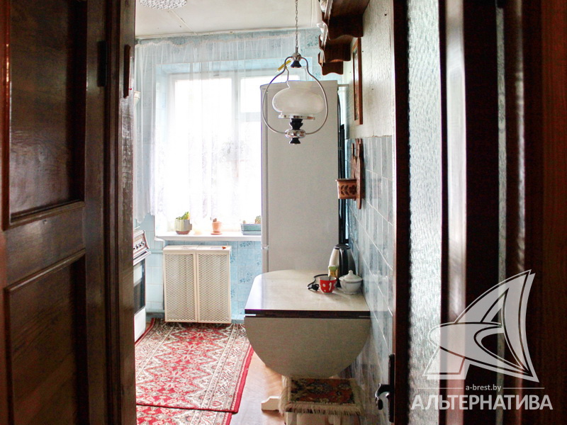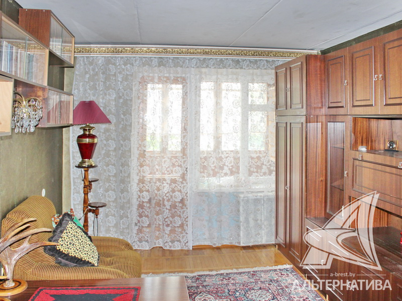 2-комнатная квартира, г. Брест, ул. Горького, 1975 г.п., 3 / 5 кирпич, 51,1 / 49,6 / 31,1 / 7,0, санузел раздельный, подвал, лоджия застеклена, деревянные окна, межкомнатные двери - массив (дуб), входная дверь деревянная (дуб), потолки - побелка (2,47 м), полы - паркет, стены оклеены обоями, в санузле современная плитка, телефон, домофон. Корпусная мебель, бытовая техника. Квартира в жилом состоянии. Чистый подъезд. Во дворе игровая детская площадка, парковка для автомобилей.