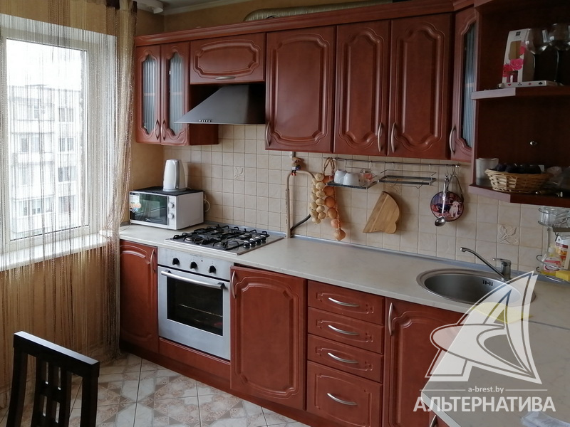 3-комнатная квартира, г. Брест, ул. Защитников Отечества, 1987 г.п., 5 / 5 панель, 71,7 / 66,8 / 40,4 / 9,5, санузел раздельный, две лоджии застеклены, стеклопакеты, межкомнатные двери - массив, входная дверь металлическая, потолки - снежка (2,50 м), полы - ламинат и плитка (кухня), стены оклеены обоями, в санузле современная плитка, заменена сантехника, заменен полотенцесушитель, заменены сантехнические трубы, новый электросчетчик, телефон, домофон. Кухонный гарнитур, варочная панель, духовой шкаф, вытяжка. Квартира с хорошим ремонтом. Дом расположен в глубине двора.