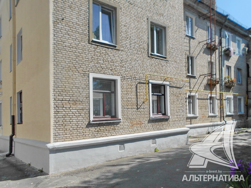 2-комнатная квартира, г. Брест, ул. Дзержинского, 1958 г.п., 2 / 3 кирпич, 48,0 / 48,0 / 29,9 / 5,9, санузел раздельный, подвал, стеклопакеты, входная дверь металлическая, потолки - снежка и из гипсокартона, полы - ламинат (положен на доску), стены оштукатурены и ошпатлеваны, декоративная окраска, жидкие обои, заменен полотенцесушитель, заменены сантехнические трубы (пластик), газовая колонка в кухне, проведена новая электропроводка, телефон, домофон. Квартира с хорошим ремонтом. Квартира расположена на две стороны. Кухня и спальня выходят во двор. Чистый подъезд.