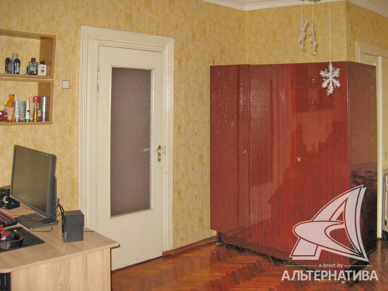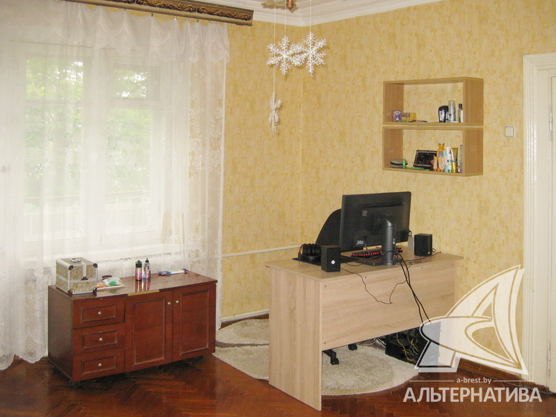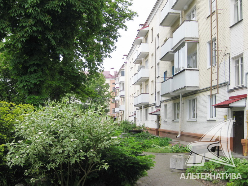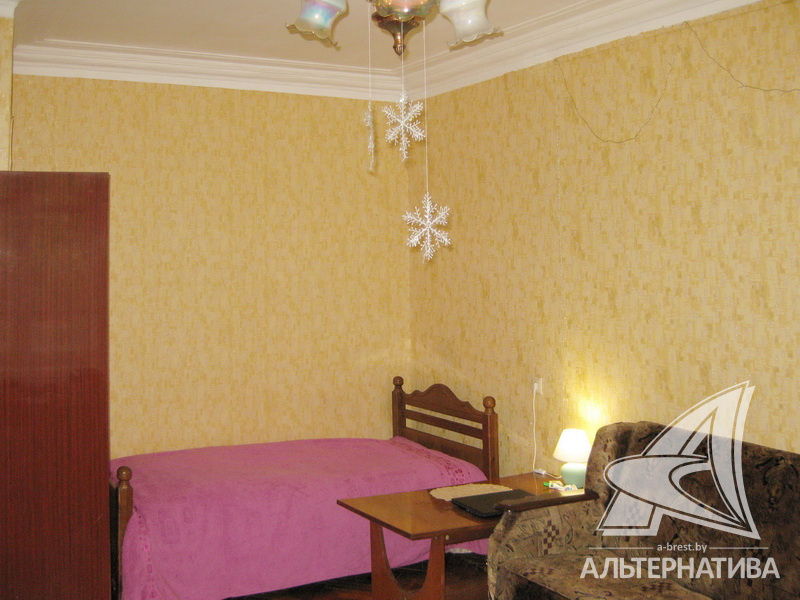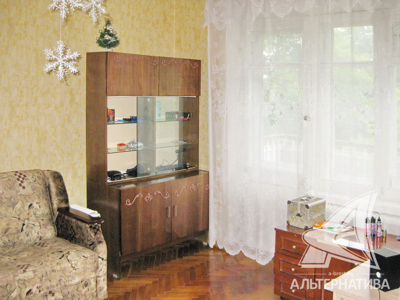 1-комнатная квартира, г. Брест, ул. Гоголя, 1957 г.п., 4 / 4 кирпич, 34,3 / 33,5 / 21,8 / 4,8, санузел совмещенный, 1 / 88 часть сарая, балкон, деревянные окна, деревянные межкомнатные двери, входная дверь металлическая, потолки - снежка (2,70 м), полы - паркет, стены оклеены обоями, в санузле современная плитка, заменена сантехника, заменен полотенцесушитель, стальная ванна, декоративный пластик, заменены сантехнические трубы, телефон, домофон. Квартира в жилом состоянии. Окна выходят на сквер. Капитальный ремонт дома. Заменены внутридомовые коммуникации. Произведен ремонт двускатной крыши. Утепление дома шубой.