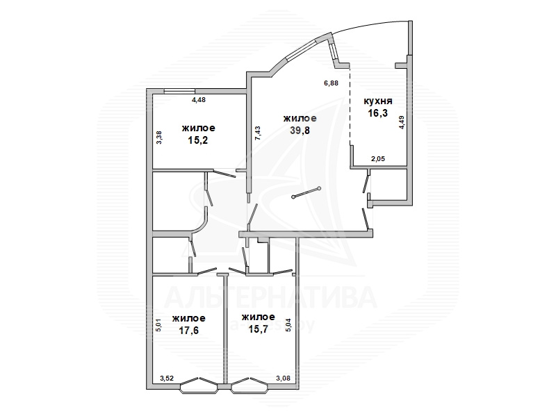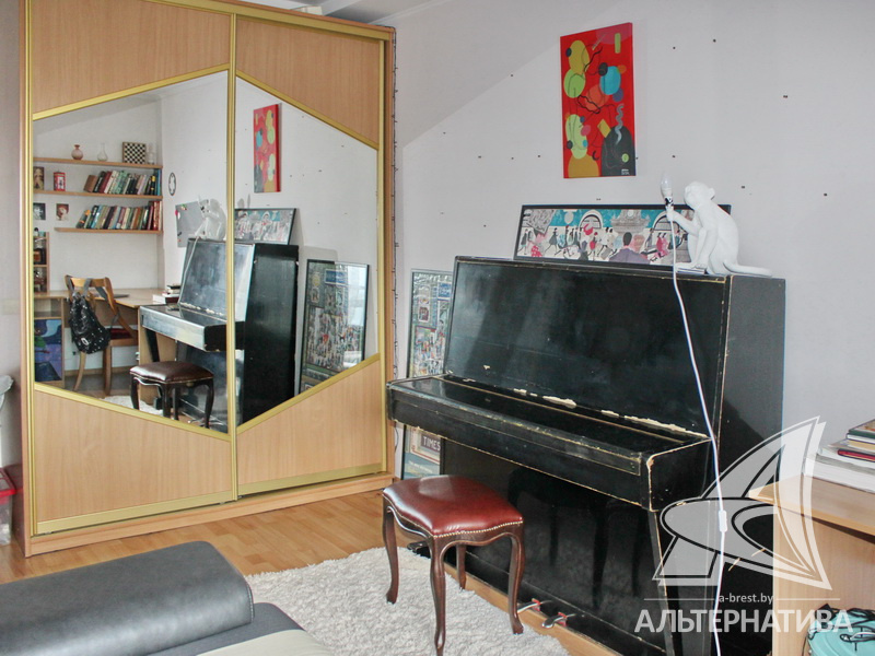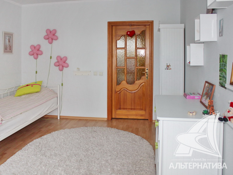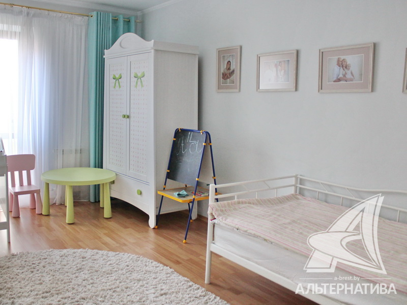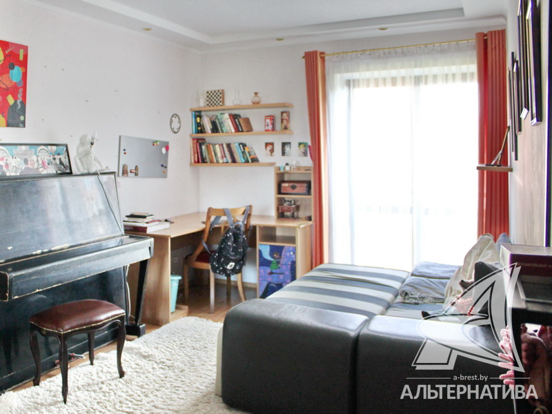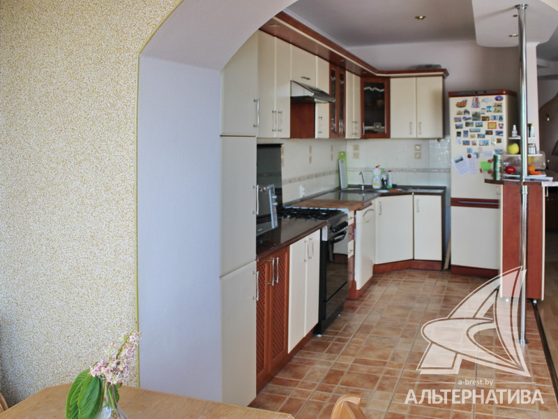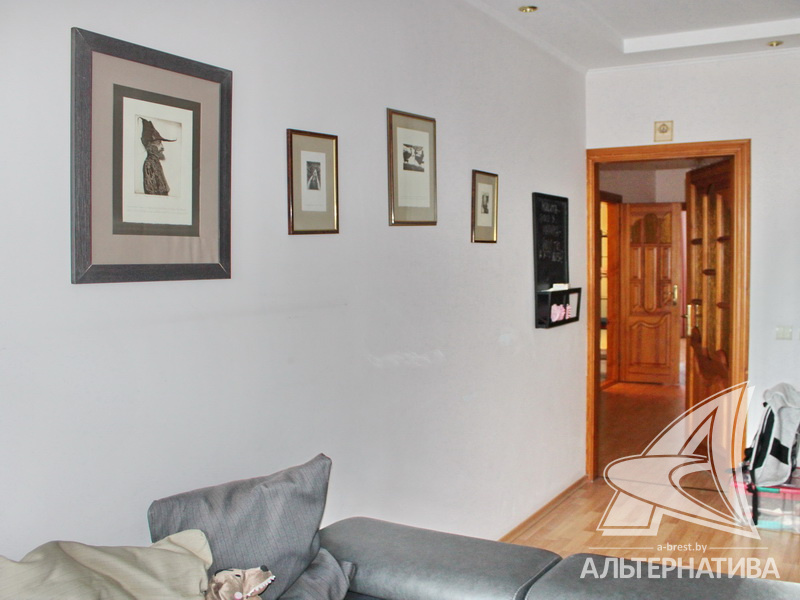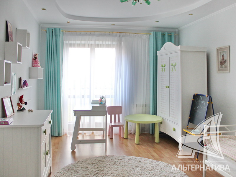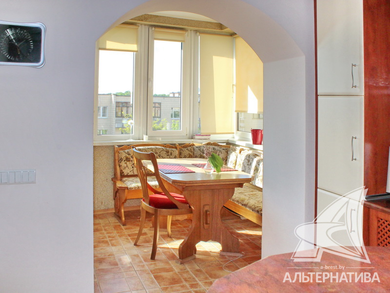 4-комнатная квартира, г. Брест, ул. Энгельса, 2001 г.п., 5 / 7 кирпич, 132,6 / 132,6 / 88,3 / 16,3, два санузла, стеклопакеты, межкомнатные двери - массив, входная дверь металлическая, многоуровневые потолки с интересной системой освещения, полы - ламинат и плитка, стены оклеены обоями, в санузле современная плитка, заменен полотенцесушитель, акриловая ванна, телефон, домофон. Встроенный кухонный гарнитур, барная стойка, бытовая техника. Шкафы-купе. Гардеробная, постирочная. Квартира с индивидуальными дизайнерскими решениями. Квартира расположена на две стороны. Окна жилых комнат выходят во двор на зеленую зону. Во дворе парковка для автомобилей. Есть своя закрытая территория. Благоустроенный двор. Рядом парк, бассейн, спортивный комплекс, поликлиника, школа, детский сад.