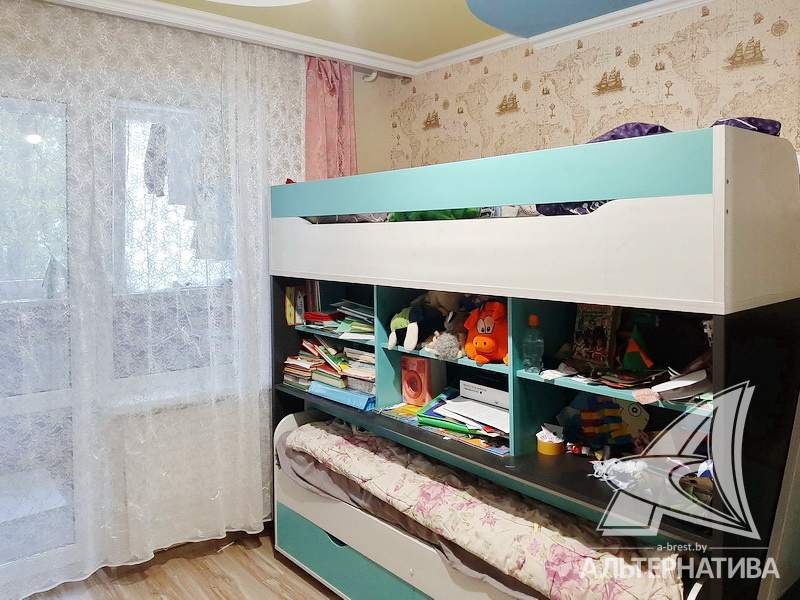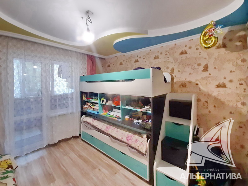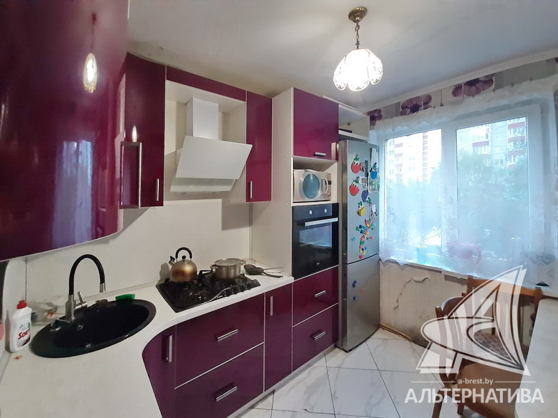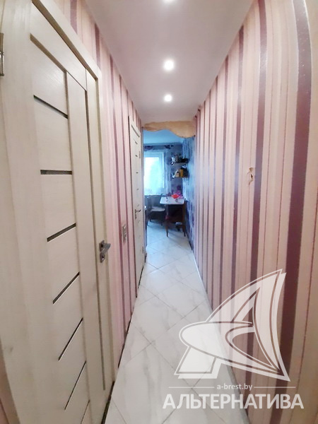 2-комнатная квартира, г. Брест, ул. Суворова, 1994 г.п., 1 / 5 панель, 52,1 / 49,1 / 29,2 / 7,0, санузел раздельный, лоджия застеклена, стеклопакеты, межкомнатные двери – экошпон, входная дверь металлическая, потолки - снежка (2,51 м), полы - ламинат (положен на доску), стены оклеены обоями, в санузле современная плитка, телефон, домофон. Кухонный гарнитур. Квартира с хорошим ремонтом. Все окна выходят во двор. Дом расположен в глубине двора.