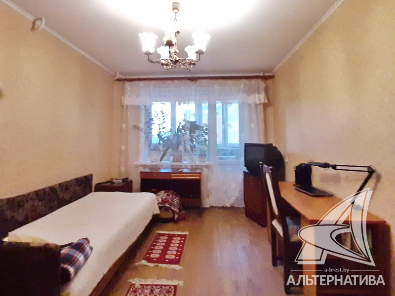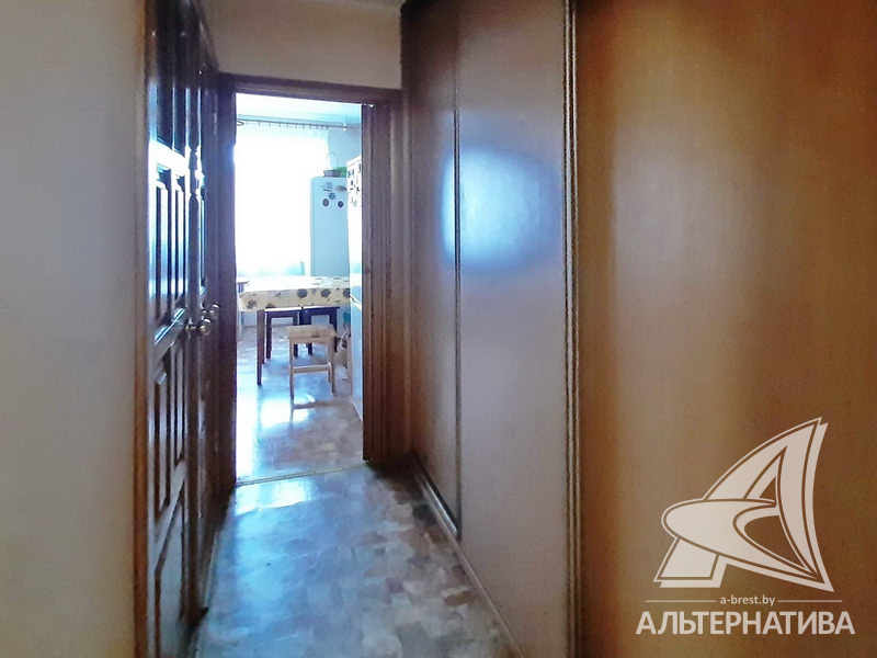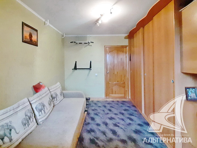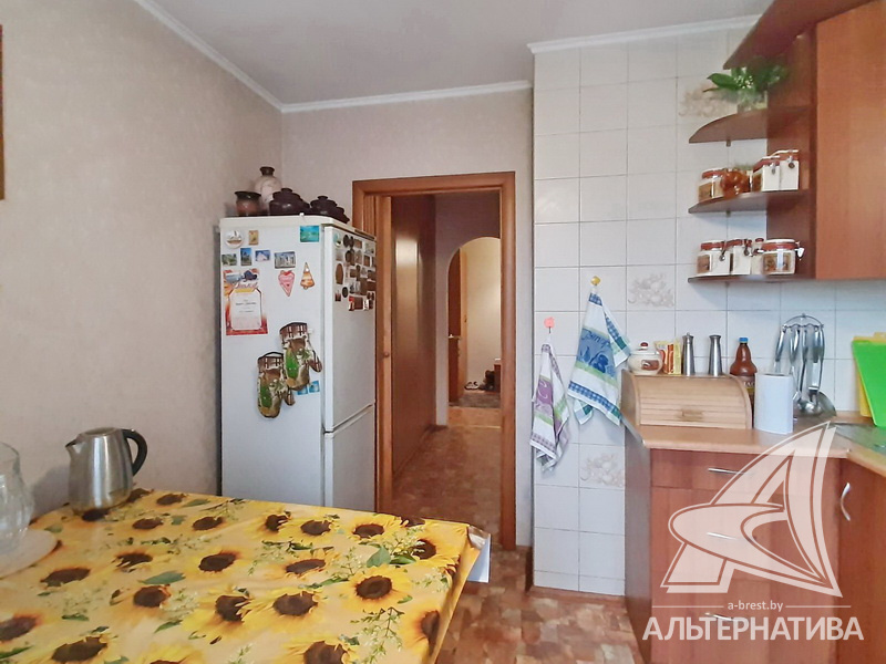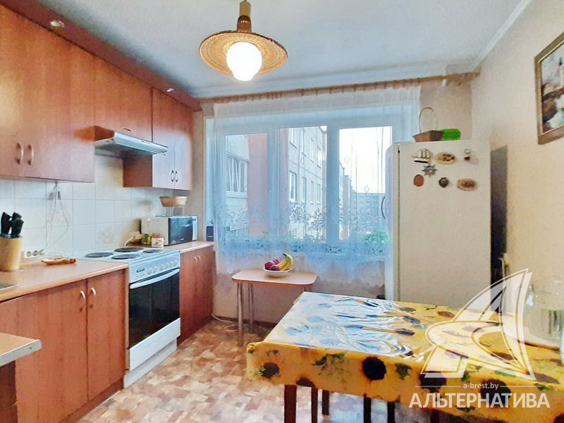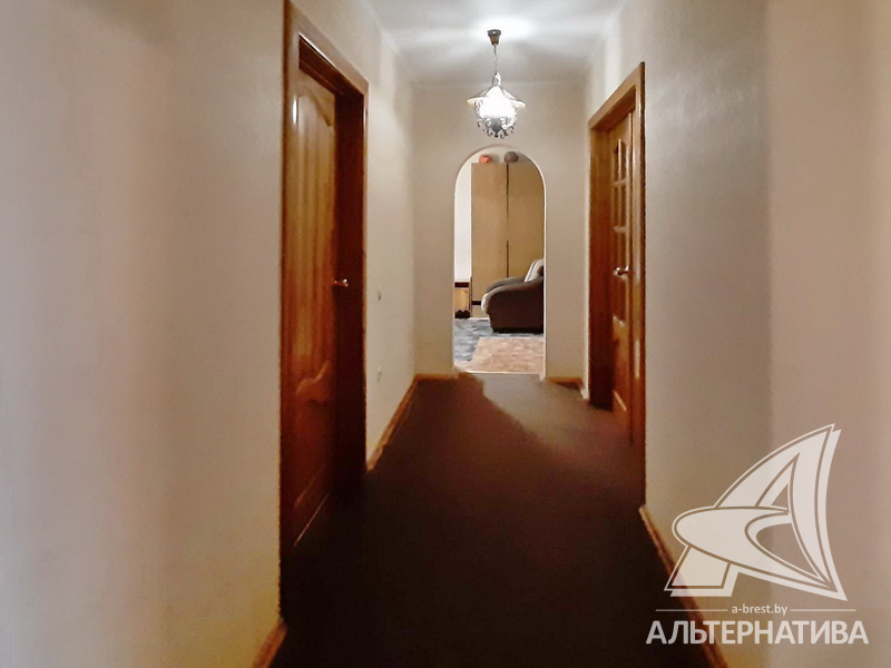 4-комнатная квартира, г. Брест, ул. Орловская, 1983 г.п., 8 / 12 панель, 91,3 / 83,7 / 52,5 / 9,5, санузел раздельный, три лоджии застеклены, стеклопакеты, межкомнатные двери - массив, входная дверь деревянная, потолки - снежка (2,50 м), полы - ламинат, ковровое покрытие, линолеум (положен на ДСП), стены оклеены обоями, в санузле современная плитка, заменен полотенцесушитель, чугунная ванна, заменены сантехнические трубы, телефон, домофон. Кухонный гарнитур, вытяжка. Два шкафа-купе. В квартире частично произведен ремонт. Квартира расположена на две стороны. Чистый подъезд. Два новых пассажирских лифта. Тамбур на одну квартиру.