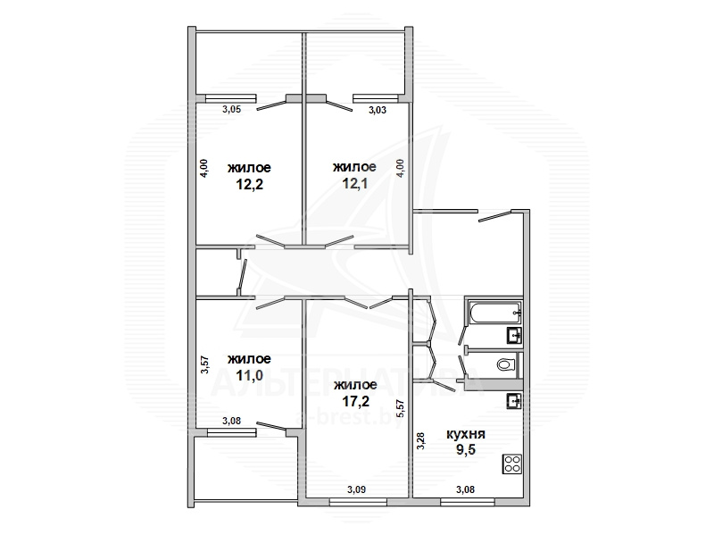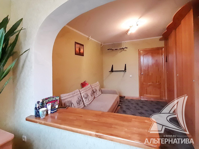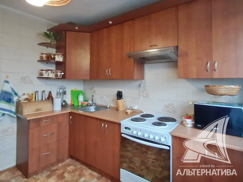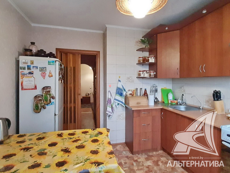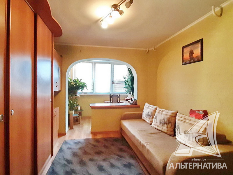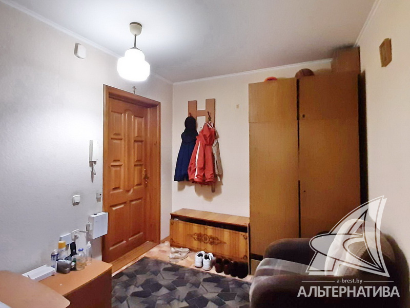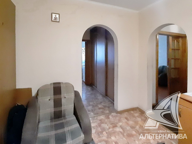 4-комнатная квартира, г. Брест, ул. Орловская, 1983 г.п., 8 / 12 панель, 91,3 / 83,7 / 52,5 / 9,5, санузел раздельный, три лоджии застеклены, стеклопакеты, межкомнатные двери - массив, входная дверь деревянная, потолки - снежка (2,50 м), полы - ламинат, ковровое покрытие, линолеум (положен на ДСП), стены оклеены обоями, в санузле современная плитка, заменен полотенцесушитель, чугунная ванна, заменены сантехнические трубы, телефон, домофон. Кухонный гарнитур, вытяжка. Два шкафа-купе. В квартире частично произведен ремонт. Квартира расположена на две стороны. Чистый подъезд. Два новых пассажирских лифта. Тамбур на одну квартиру.