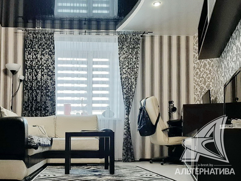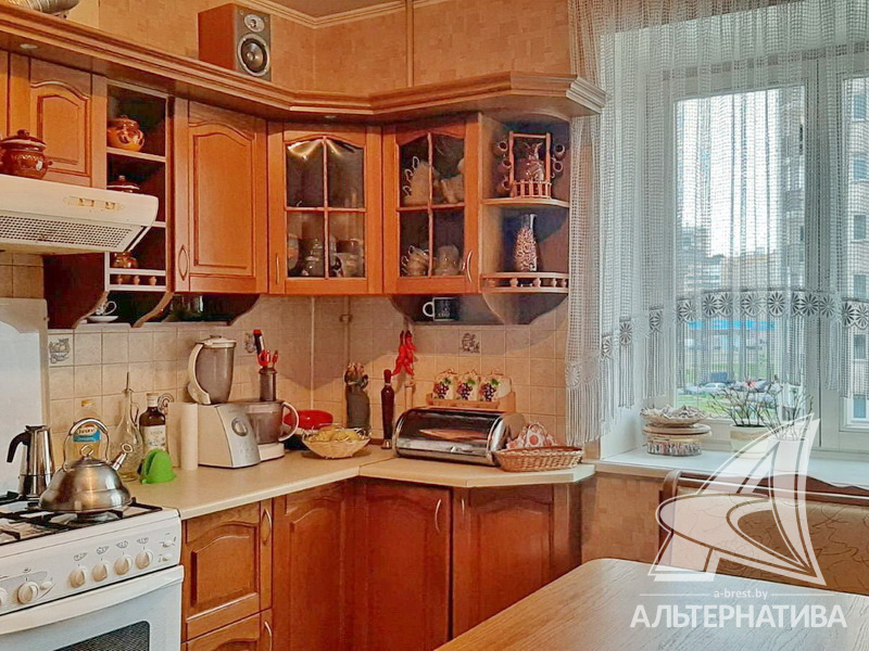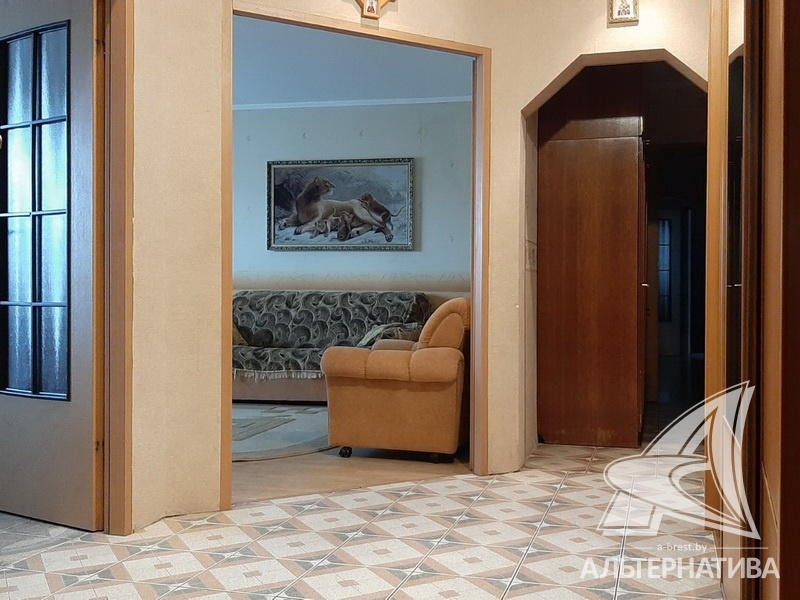 4-комнатная квартира, г. Брест, ул. Московская, 2001 г.п., 4 / 7 кирпич, 101,1 / 97,4 / 59,1 / 10,1, санузел раздельный, подвал, две лоджии застеклены (стеклопакеты), деревянные стеклопакеты, межкомнатные двери – МДФ, входная дверь металлическая, потолки - снежка и натяжные (2,60 м), полы - ламинат и плитка (кухня, прихожая) (положены на стяжку), стены оштукатурены, ошпатлеваны, оклеены обоями, в санузле современная плитка, телефон, домофон. Встроенный шкаф-купе в прихожей. Кухонный гарнитур по договоренности. Квартира с хорошим ремонтом. Квартира расположена на две стороны. Все окна выходят во двор. Один пассажирский лифт. Во дворе игровая детская площадка, парковка для автомобилей.