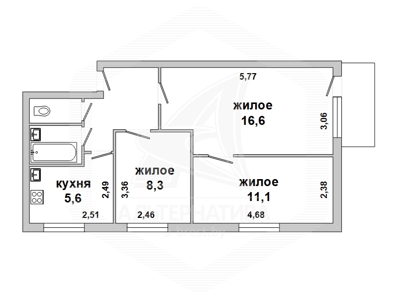 Срочно! 3-комнатная квартира, г. Брест, ул. Жукова, 1969 г.п., 5 / 5 кирпич, 50,5 / 49,7 / 36,0 / 5,6, балкон, стеклопакеты, межкомнатные двери – МДФ, потолки - снежка, из гипсокартона и натяжные (глянец) (2,50 м), полы - ламинат, стены оклеены обоями, в санузле современная плитка, заменена сантехника, акриловая ванна, телефон, домофон. Кухонный гарнитур, бытовая техника. Квартира с хорошим ремонтом. Чистый подъезд.