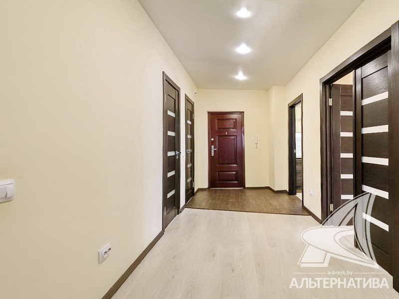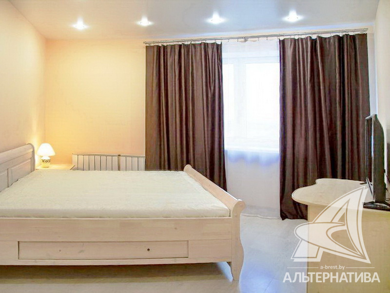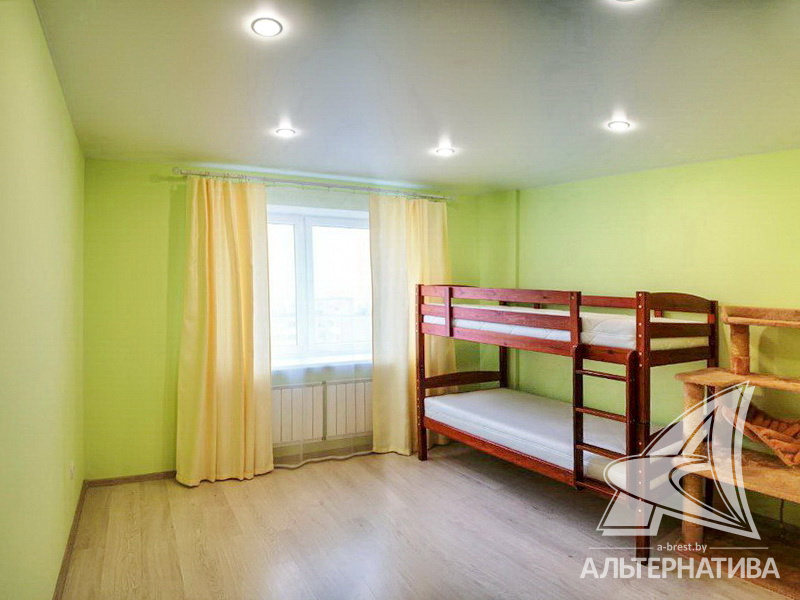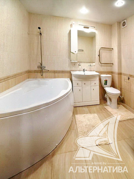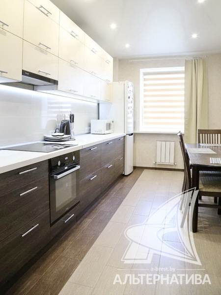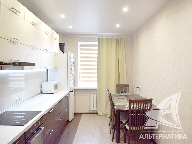 3-комнатная квартира, г. Брест, ул. Октябрьской Революции, 2014 г.п., 13 / 16 монолит, 92,4 / 92,4 / 56,7 / 11,7, санузел раздельный, стеклопакеты, входная дверь металлическая, натяжные потолки (сатин), полы - ламинат и плитка, на стенах декоративная окраска, отделка штукатуркой, в санузле современная плитка, телефон, домофон, система видеонаблюдения. Кухонный гарнитур, шкаф-купе, мебель в ванной. Квартира с хорошим ремонтом. Пассажирский и грузовой лифты.