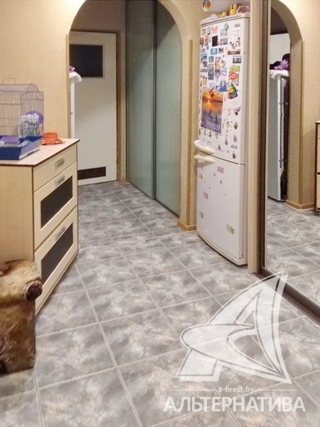 2-комнатная квартира, г. Брест, ул. Янки Купалы, 1996 г.п., 5 / 10 панель, 55,1 / 53,2 / 27,0 / 9,0, санузел раздельный, подвал, лоджия застеклена, деревянные стеклопакеты, межкомнатные двери – экошпон, входная дверь металлическая, натяжные потолки (2,58 м), полы - ламинат и плитка (положены на стяжку), стены оклеены обоями, в санузле современная плитка, домофон. Кухонный гарнитур, два шкафа-купе. Квартира с хорошим ремонтом. Дом расположен в глубине двора.
