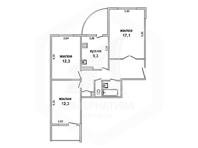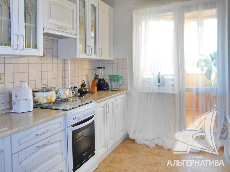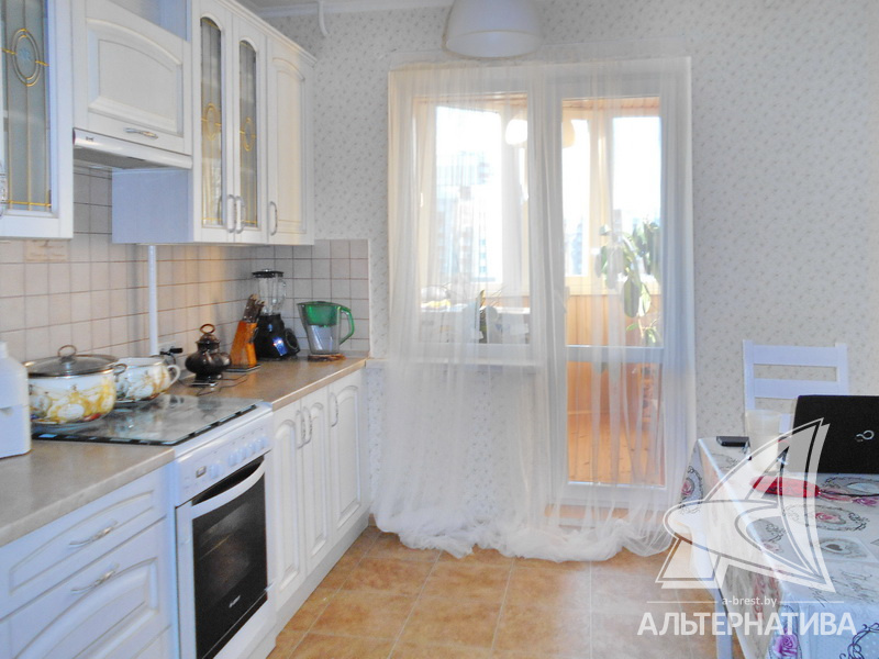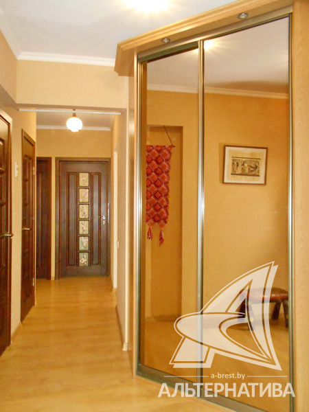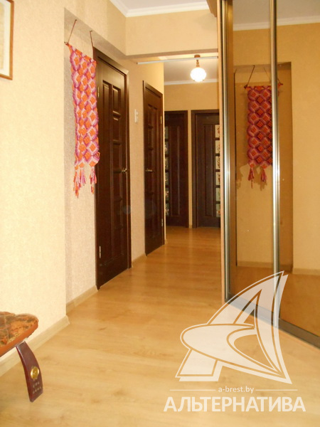 3-комнатная квартира, г. Брест, ул. Сябровская, 1994 г.п., 2 / 10 панель, 71,4 / 66,8 / 41,7 / 9,3, санузел раздельный, две лоджии застеклены, двухкамерные стеклопакеты, межкомнатные двери - массив, входная дверь металлическая, потолки - снежка (2,60 м), полы - ламинат (положен на стяжку), стены оклеены обоями, в санузле современная плитка, телефон, домофон. Встроенный кухонный гарнитур, два шкафа-купе. Квартира с хорошим ремонтом. Все окна выходят во двор. Один пассажирский лифт. Дом расположен в глубине двора.
