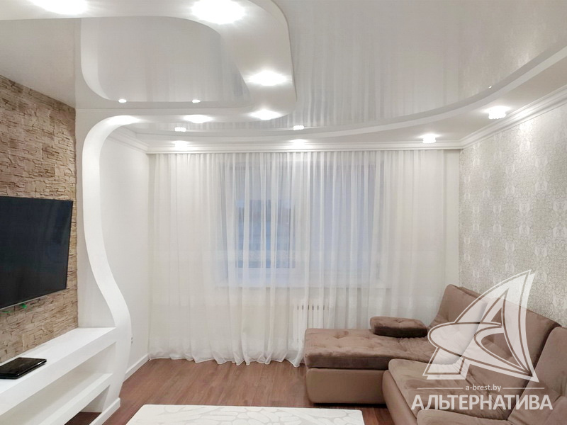 1-комнатная квартира, г. Брест, ул. Красногвардейская, 2016 г.п., 3 / 5 кирпич, 43,2 / 40,5 / 18,8 / 9,2, санузел совмещенный, подвал, лоджия застеклена, стеклопакеты, межкомнатные двери – шпон, входная дверь металлическая, потолки - из гиспокартона, натяжные, многоуровневые (2,55 м), полы (с подогревом) - ламинат, плитка, стены оклеены обоями, декоративная окраска, штукатурка, в санузле современная плитка, заменен полотенцесушитель, инсталляция, телефон, домофон. Кухонный гарнитур, бытовая техника, два шкафа-купе. Остальная мебель по договоренности. Квартира с хорошим ремонтом. Все окна выходят во двор. Чистый подъезд. Во дворе игровая детская площадка, парковка для автомобилей. Дом расположен в глубине двора.