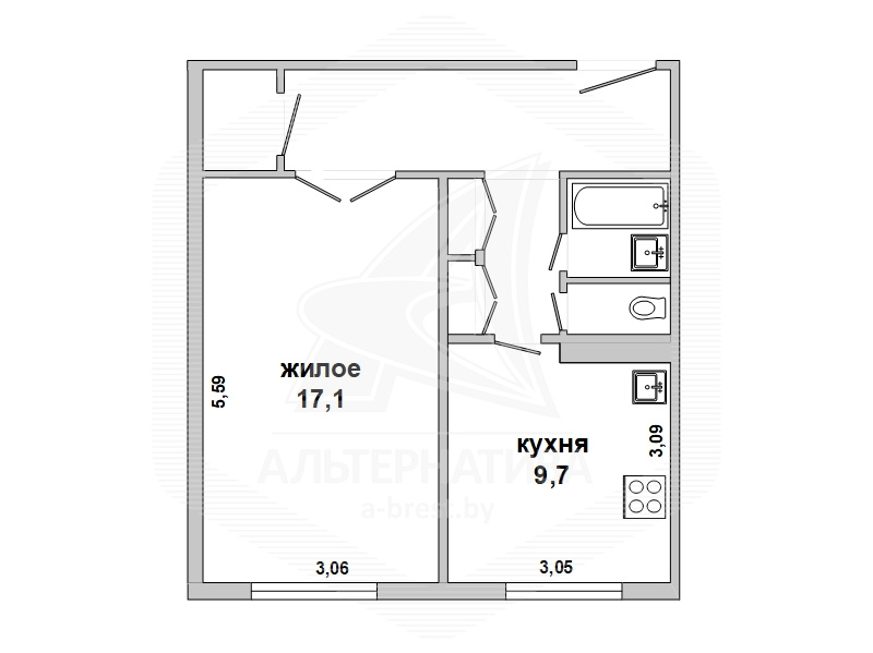 | Жилая площадь | 17.1 м² |