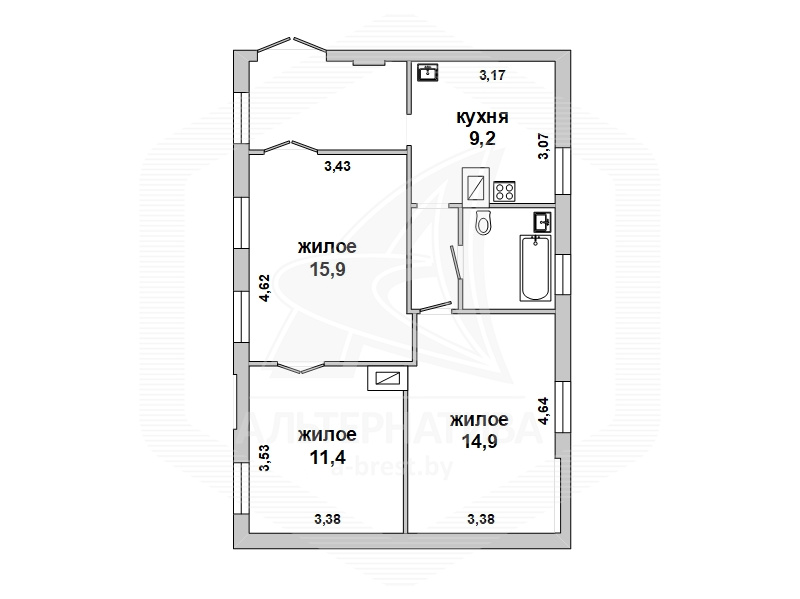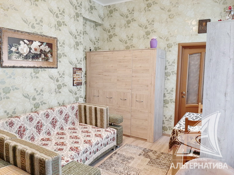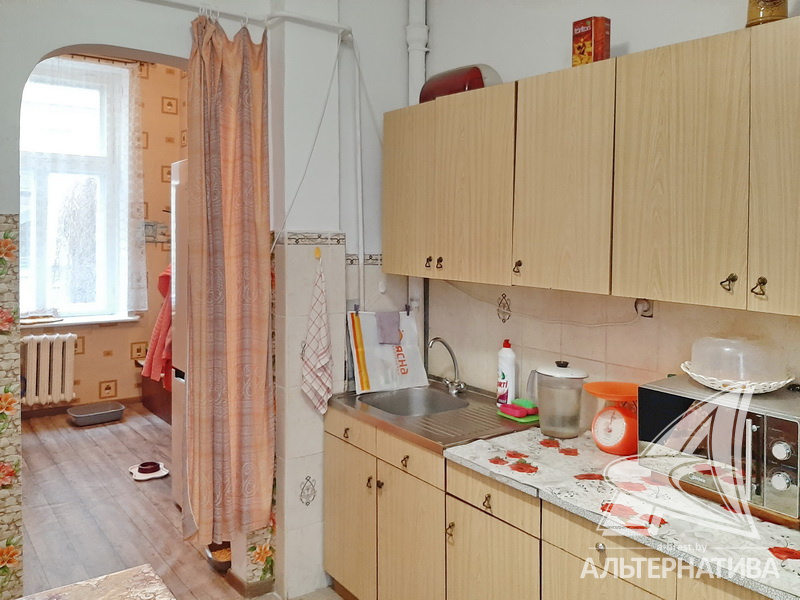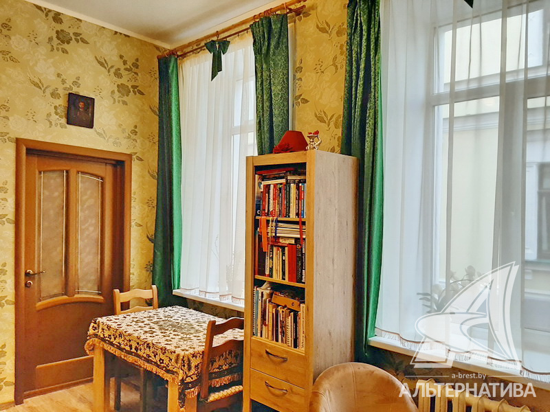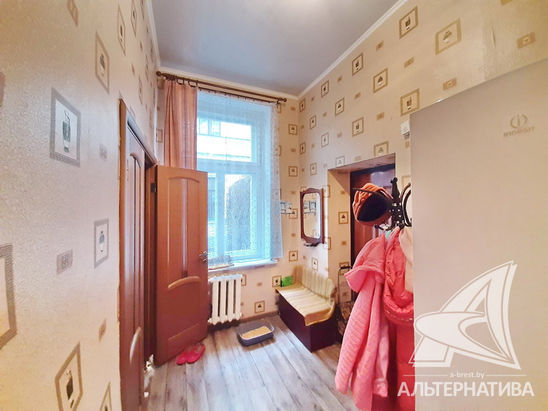 3-комнатная квартира, г. Брест, ул. Карла Маркса, 1940 г.п., 1 / 2 кирпич, 64,7 / 64,7 / 42,2 / 9,2, санузел совмещенный, подвал, частично стеклопакеты, межкомнатные двери - массив, деревянные, входная дверь металлическая, потолки - натяжные, сайдинг (кухня, коридор), одноуровневые, полы - ДСП, ламинат, линолеум (коридор), плитка (кухня), стены оклеены обоями, в санузле современная плитка, акриловая ванна, газовая колонка в санузле, частично проведена новая электропроводка, телефон. Квартира в жилом состоянии. Квартира расположена на две стороны. Капитальный ремонт дома 2014 г.
