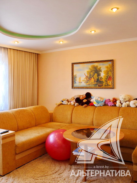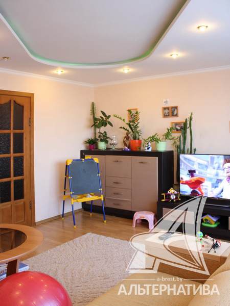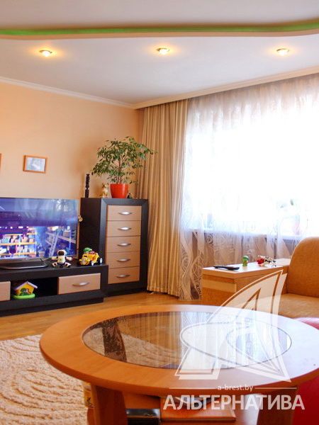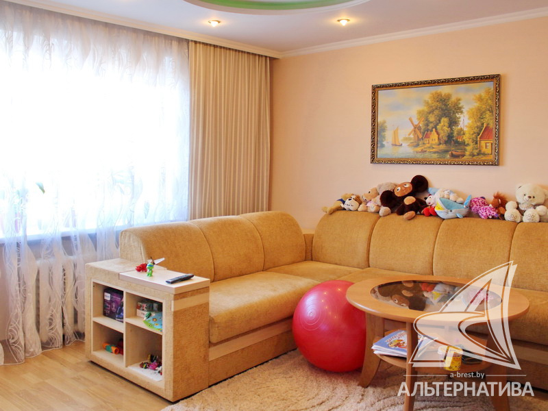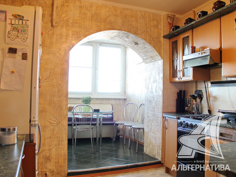 4-комнатная квартира, г. Брест, ул. Московская, 1976-1977 г.п., 8 / 9 кирпич, 87,3 / 84,3 / 50,4 / 13,3, санузел раздельный, подвал, лоджия, стеклопакеты, межкомнатные двери - массив, входные двери двойные - металлическая и деревянная, потолки - снежка (2,50 м), полы - ламинат и линолеум (кухня) (положены на доску), стены ошпатлеваны, декоративная отделка штукатуркой в кухне, в санузле современная плитка, чугунная ванна, домофон. Квартира находится под охраной. Кухонный гарнитур, газовая плита, вытяжка, посудомоечная машина. Квартира с хорошим ремонтом. Чистый подъезд. Один пассажирский лифт. Во дворе игровая детская площадка, парковка для автомобилей.