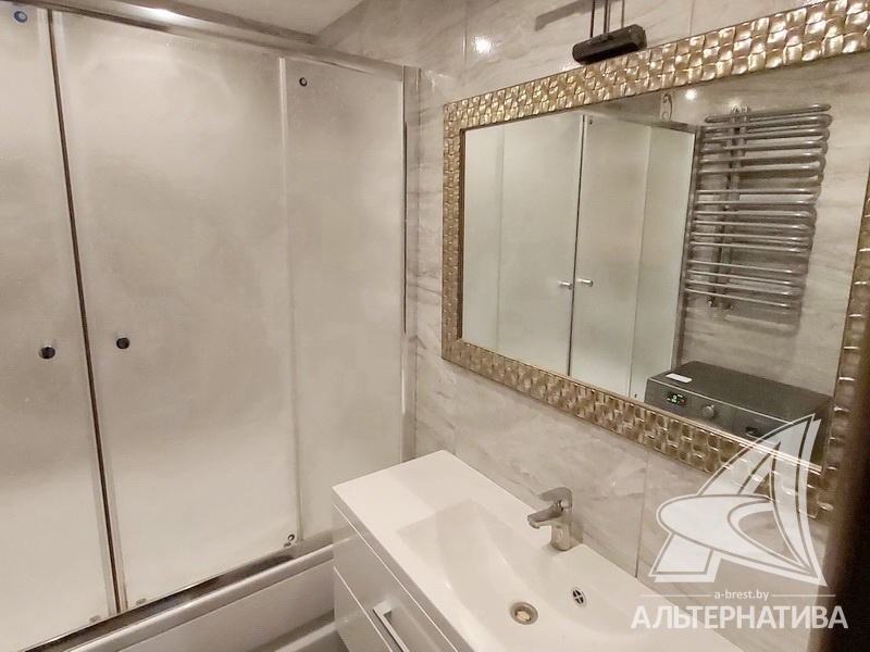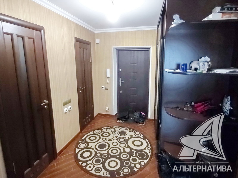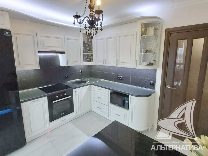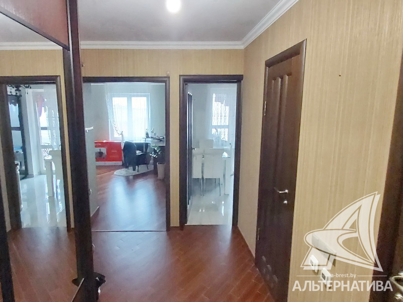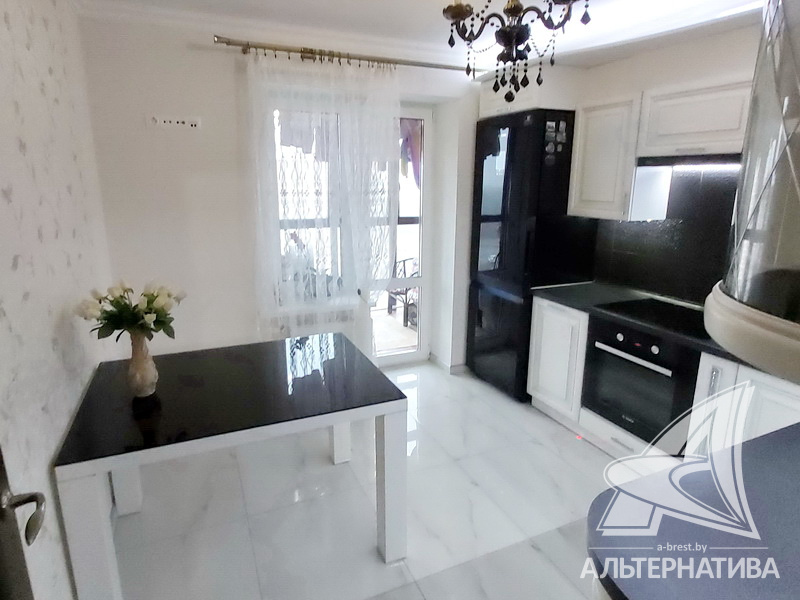 2-комнатная квартира, г. Брест, ул. Васнецова, 2014 г.п., 12 / 16 монолит, 59,4 / 56,9 / 34,6 / 8,9, санузел раздельный, лоджия застеклена, двухкамерные стеклопакеты, межкомнатные двери - массив, входная дверь металлическая, потолки - снежка, полы - паркет и плитка (прихожая), стены оклеены обоями, в санузле современная плитка, заменена сантехника, заменен полотенцесушитель, кондиционер, телефон, домофон. Кухонный гарнитур, индукционная поверхность, духовой шкаф, вытяжка, посудомоечная машина, холодильник, обеденная группа. Встроенный шкаф-купе в прихожей и в спальне, кровать, карнизы, люстры. Квартира с хорошим ремонтом. Квартира расположена на две стороны. Пассажирский и грузовой лифты. Благоустроенный двор, рядом магазины, парковочные места. Красивый вид на реку.