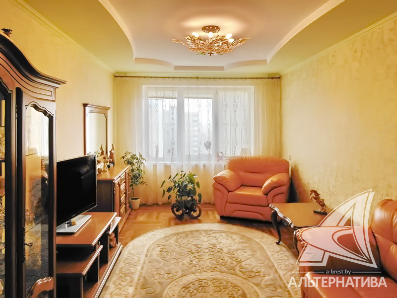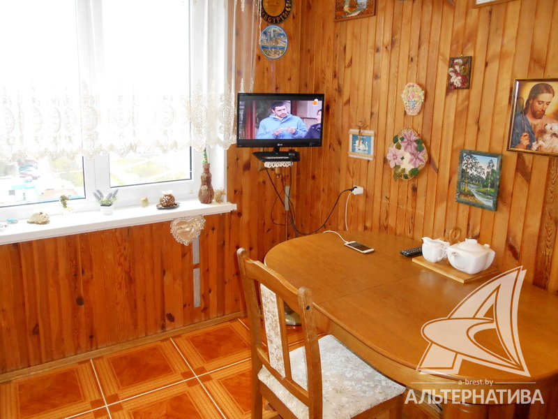 2-комнатная квартира, г. Брест, ул. Луцкая, 1989 г.п., 8 / 10 панель, 52,1 / 49,9 / 29,6 / 7,4, санузел раздельный, лоджия застеклена (подогрев пола), стеклопакеты, межкомнатные двери - массив (ясень, сосна), входная дверь двойная деревянная, потолки - снежка (комната, зал), реечный (сайдинг) (коридор, кухня), многоуровневые (зал) (2,50 м), полы - паркет (комнаты), плитка (коридор, кухня, лоджия), стены оклеены обоями, деревянные панели (сосна) на кухне, пробка в коридоре, в санузле современная плитка, чугунная ванна, телефон, домофон. Кухонный гарнитур (дуб), стол и стулья (натуральное дерево). Шкаф в коридоре. Комод, витрина, тумба под телевизор. Спальный гарнитур (дуб). Квартира с хорошим ремонтом. Квартира находится под охраной. Все окна выходят на аллею Дмитрия Гвишиани. Чистый подъезд. Один пассажирский лифт. На этаже оборудована сушилка. Во дворе игровая детская площадка. Дом расположен в глубине двора. Капитальный ремонт дома 2015 г. Произведен ремонт крыши.