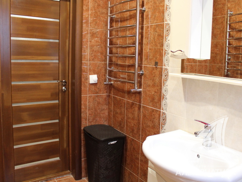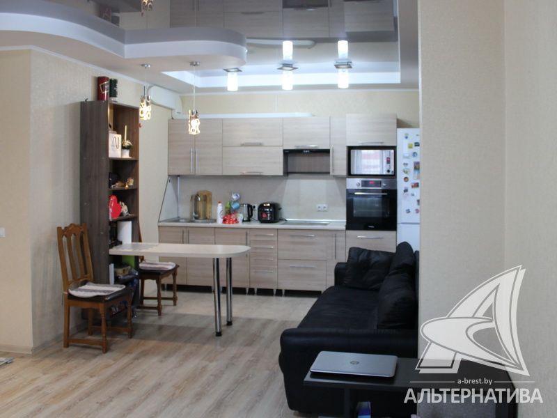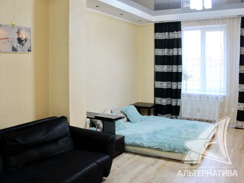 1-комнатная квартира, г. Брест, ул. Морозова, 2013 г.п., 17 / 17 блок + кирпич, 44,8 / 41,1 / 17,4 / 10,5, санузел совмещенный (с окном), лоджия утеплена, теплый электрический пол, стеклопакеты, ламинированные межкомнатные двери, потолки - снежка (2,72 м), полы - ламинат и плитка, стены оклеены обоями, в санузле современная плитка, телефон, домофон, система видеонаблюдения. В стоимость входит стиральная машина, варочная поверхность, духовой шкаф. Квартира с хорошим ремонтом. Два пассажирских и один грузовой лифты. Есть технический этаж. Дом оборудован пандусом. Во дворе игровая детская площадка, парковка для автомобилей. Красивый вид на город.