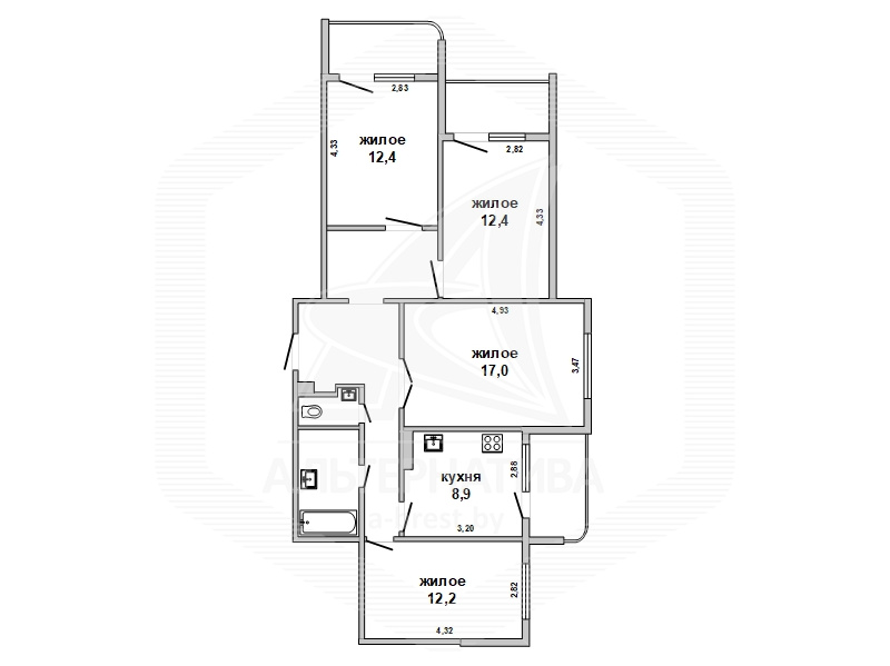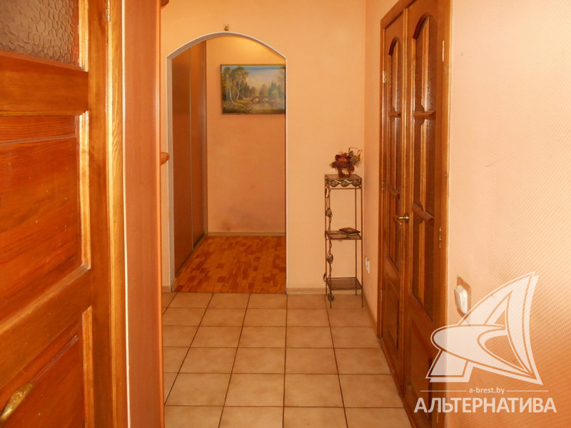 4-комнатная квартира, г. Брест, ул. Вульковская, 2003 г.п., 10 / 10 панель, 90,7 / 85,0 / 54,0 / 8,9, санузел раздельный, два подвала, три лоджии застеклены, стеклопакеты, межкомнатные двери - массив, входная дверь металлическая, потолки - снежка и сайдинг (кухня) (2,64 м), полы - паркет, линолеум (кухня), плитка (коридор) (положены на стяжку), стены оклеены обоями, в санузле современная плитка, чугунная ванна, телефон, домофон. Кухонный гарнитур, встроенный шкаф. Квартира с хорошим ремонтом. Квартира расположена на две стороны. Чистый подъезд. Один пассажирский лифт. Технический этаж. Во дворе игровая детская площадка, парковка для автомобилей.