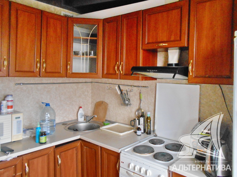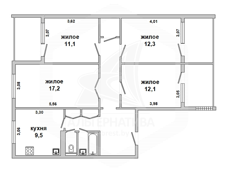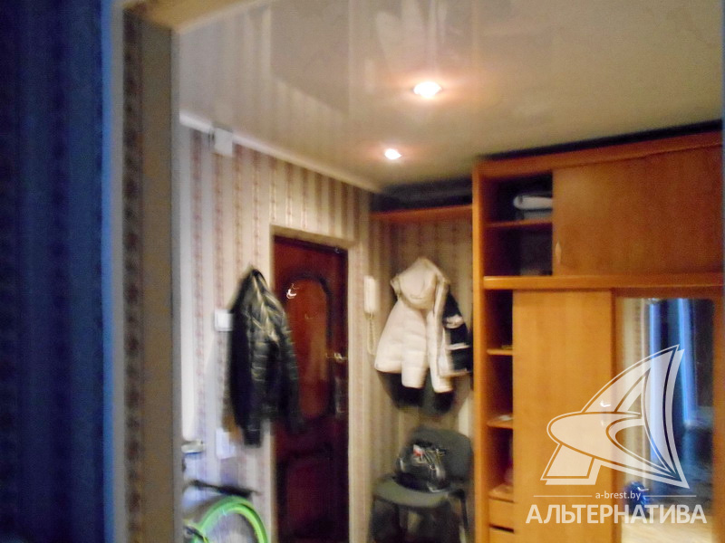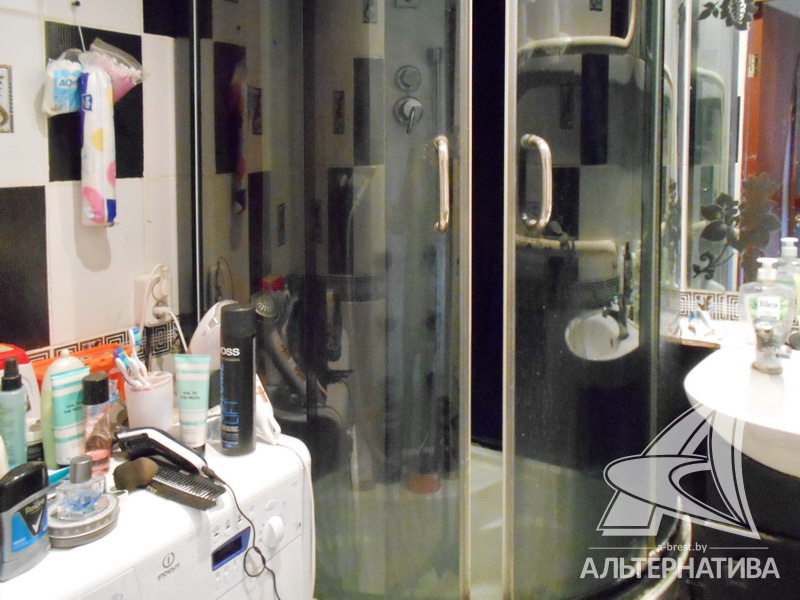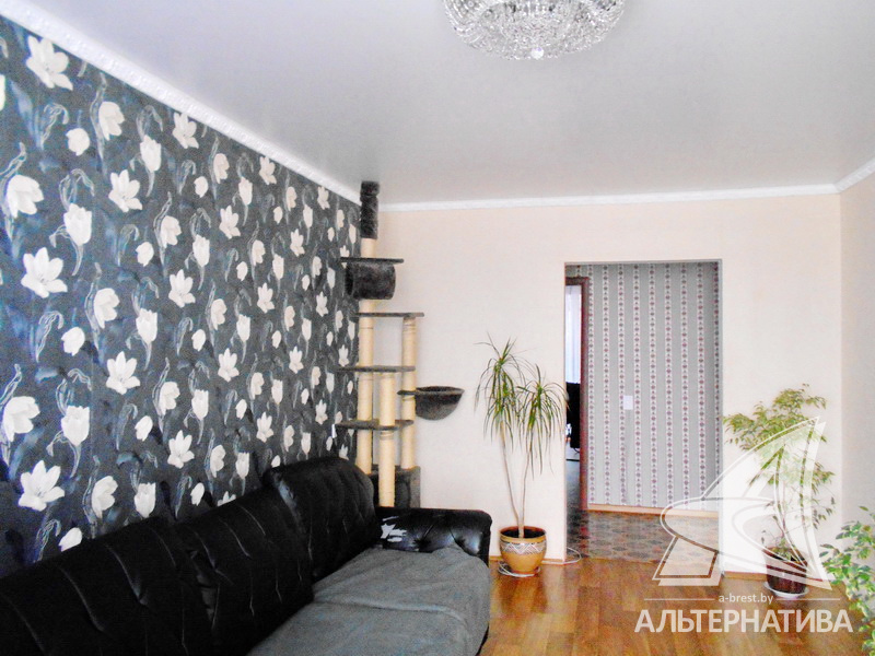 4-комнатная квартира, г. Брест, пр-т Партизанский, 1982 г.п., 12 / 12 панель, 91,8 / 84,3 / 52,7 / 9,5, санузел раздельный, три лоджии застеклены, стеклопакеты, межкомнатные двери – МДФ, входная дверь металлическая, потолки - натяжные и многоуровневые (кухня), полы - ламинат и линолеум (положены на ДСП), в санузле заменена сантехника, душевая кабина, заменены сантехнические трубы, телефон, домофон. Встроенный кухонный гарнитур. Квартира в жилом состоянии. Квартира расположена на две стороны. Окна жилых комнат выходят во двор. Два пассажирских лифта.