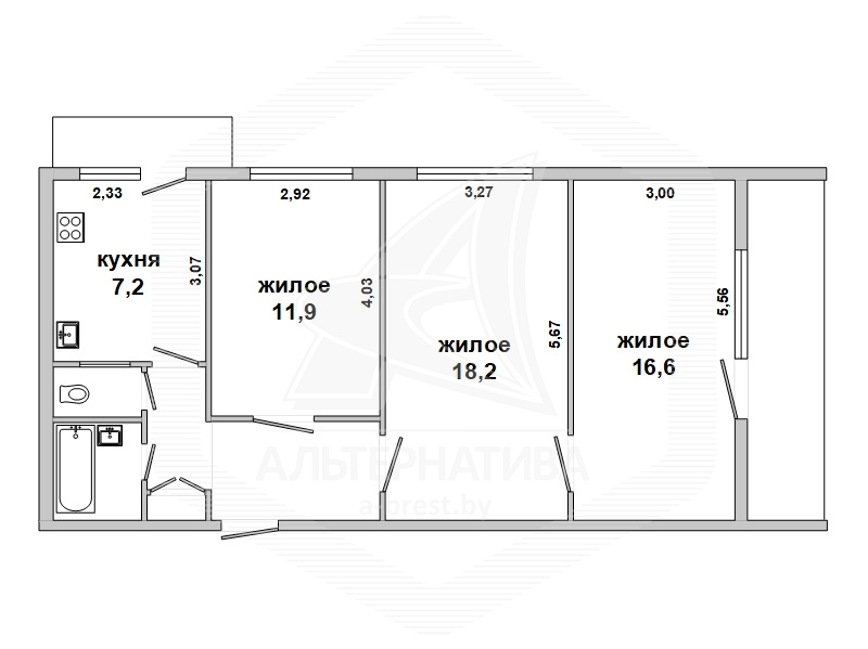 3-комнатная квартира, г. Брест, ул. Московская, 1971 г.п., 6 / 9 кирпич, 67,7 / 63,5 / 46,7 / 7,2, санузел раздельный, лоджия и балкон застеклены, деревянные окна, потолки - оклеены обоями (2,48 м), полы - линолеум, ковролин и плитка, стены оклеены обоями, в санузле современная плитка, заменены сантехнические трубы, телефон, домофон. Мебель по договоренности. Квартира в жилом состоянии. Квартира расположена на две стороны. Один пассажирский лифт. Дом расположен в глубине двора.