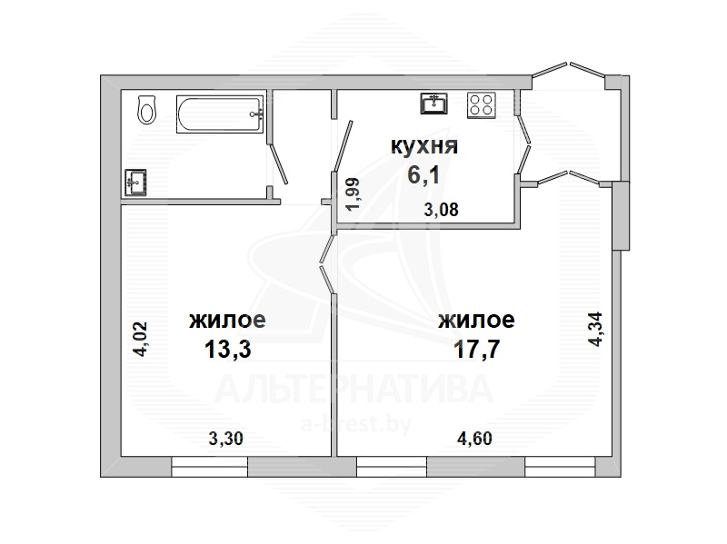 | Общая площадь | 44.1 м² |