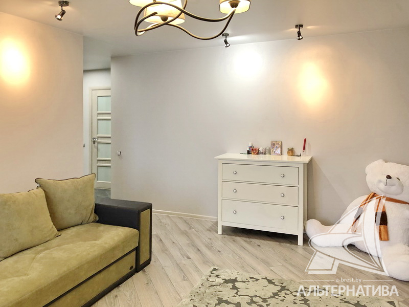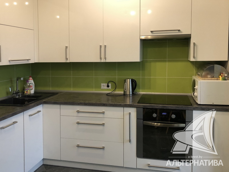 2-комнатная квартира, г. Брест, ул. Васнецова, 2014 г.п., 12 / 16 ж/б каркас + блок, 59,9 / 57,4 / 33,8 / 8,9, санузел раздельный, лоджия застеклена, стеклопакеты, входная дверь металлическая, потолки - снежка и натяжные, полы - немецкий ламинат и плитка, стены оклеены немецкими обоями, в санузле современная плитка, телефон, домофон. Вся мебель и бытовая техника: холодильник, посудомоечная машина, вытяжка, варочная панель, духовой шкаф. Квартира с хорошим ремонтом. Квартира расположена на две стороны. Торг !