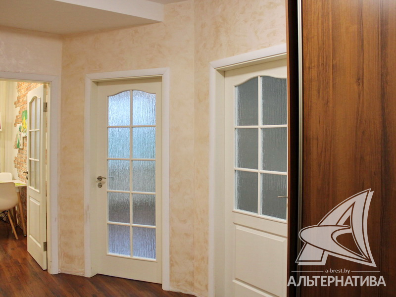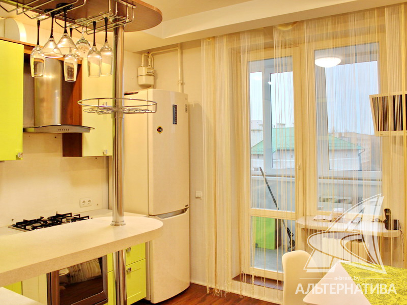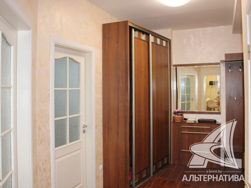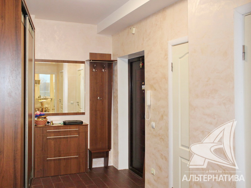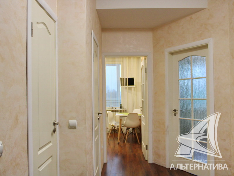 2-комнатная квартира, г. Брест, ул. Васнецова, 2007 г.п., 6 / 10 кирпич, 54,8 / 47,6 / 24,7 / 9,8, санузел раздельный, две лоджии застеклены, деревянные стеклопакеты, межкомнатные двери - МДФ, входная дверь металлическая, многоуровневые потолки с интересной системой освещения (2,70 м), полы - ламинат и плитка, на стенах обои и декоративная окраска, в санузле современная плитка, заменена сантехника, душевая кабина, заменены сантехнические трубы, установлены фильтры очистки воды, телефон, домофон. Кухонный гарнитур со встроенной бытовой техникой: варочная поверхность, духовой шкаф, вытяжка. Обеденная группа. Шкаф-купе в прихожей и спальне. Корпусная мебель в комнате и прихожей. Оборудование в ванной комнате. Квартира с хорошим ремонтом. Квартира расположена на две стороны. Все окна выходят во двор. Чистый подъезд. Один пассажирский лифт. Дом расположен в глубине двора.