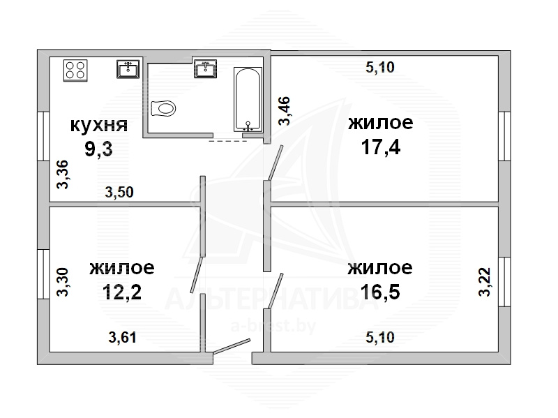 3-комнатная квартира, г. Брест, ул. Куйбышева, 1958 г.п., 2 / 3 кирпич, 66,7 / 66,7 / 46,1 / 9,3, санузел совмещенный, подвал, стеклопакеты, входная дверь деревянная, потолки - лепнина (2,91 м), полы - паркет и плитка (кухня) (положены на стяжку), стены оклеены обоями, отделка камнем в коридоре, в санузле современная плитка, акриловая ванна, заменены сантехнические трубы (металл), газовая колонка в санузле, проведена частично новая электропроводка, новый электросчетчик, телефон, домофон. Кухонный гарнитур. Квартира в жилом состоянии. Квартира расположена на две стороны. Окна жилых комнат выходят во двор. Тамбур на три квартиры. Во дворе парковка для автомобилей. Капитальный ремонт дома 2016 г. Произведен ремонт крыши. Технический этаж, чердак.