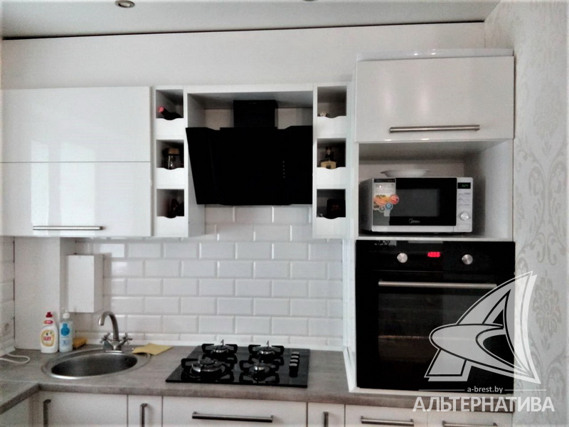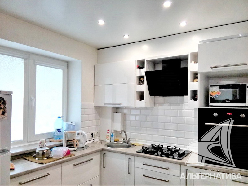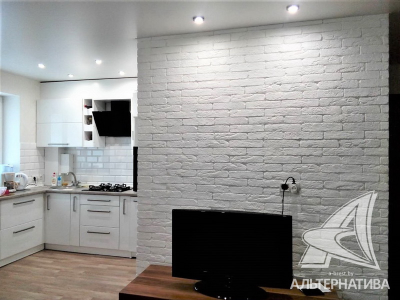 1-комнатная квартира, г. Брест, ул. Жукова, 1962 г.п., 1 / 4 кирпич, 30,5 / 30,5 / 17,8 / 6,2, санузел совмещенный, стеклопакеты, межкомнатные двери - МДФ, входная дверь металлическая, натяжные потолки (глянец, сатин) (2,50 м), полы - ламинат и плитка, стены оклеены обоями, отделка камнем, в санузле современная плитка, заменена сантехника, заменены сантехнические трубы, газовая колонка в кухне, проведена новая электропроводка, установлены новые радиаторы, телефон. Встроенный кухонный гарнитур, варочная панель, духовой шкаф, вытяжка. Шкаф-купе. Квартира с хорошим ремонтом. Чистый подъезд.