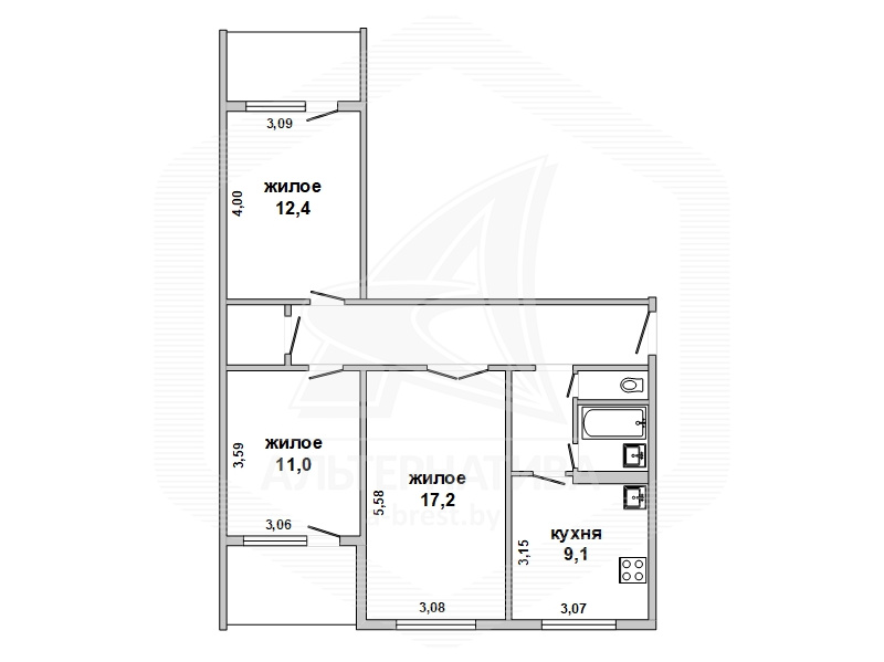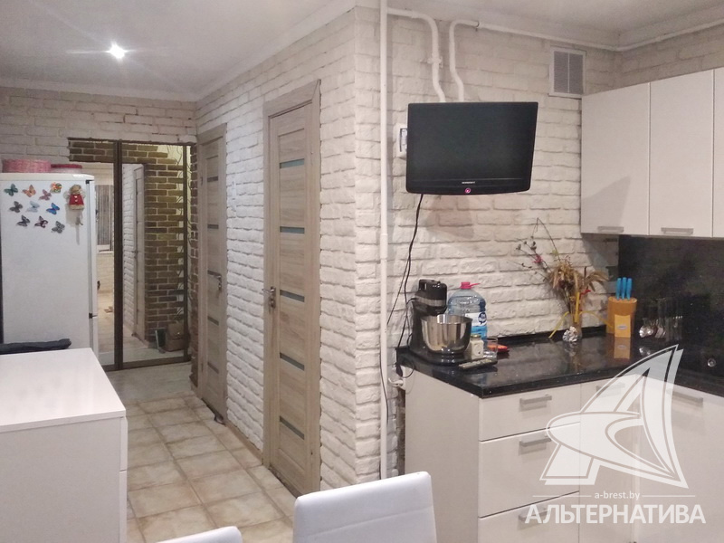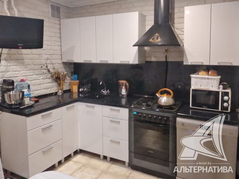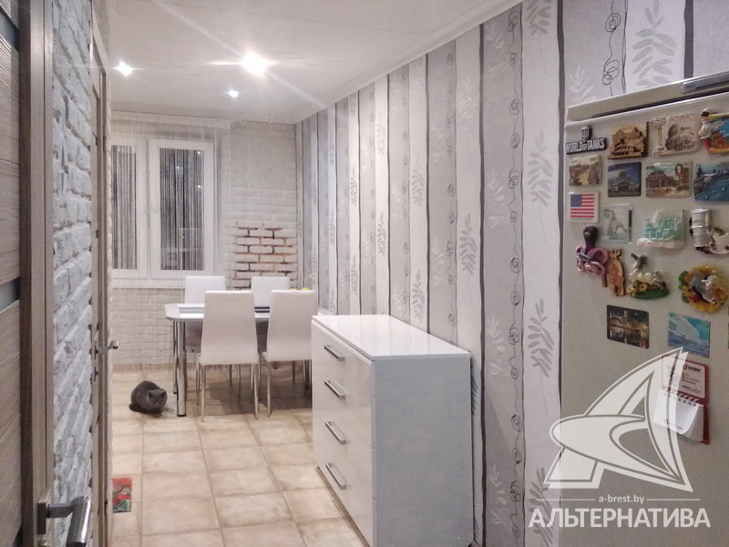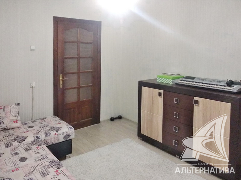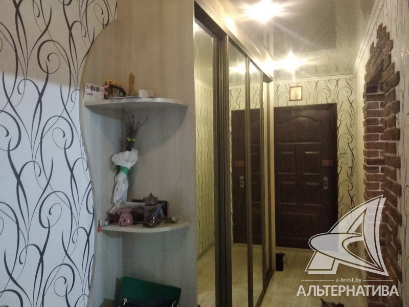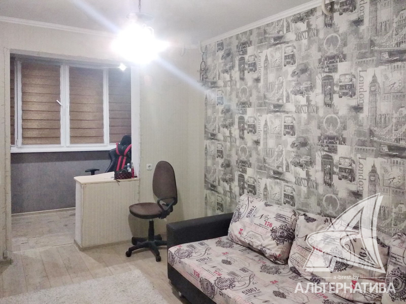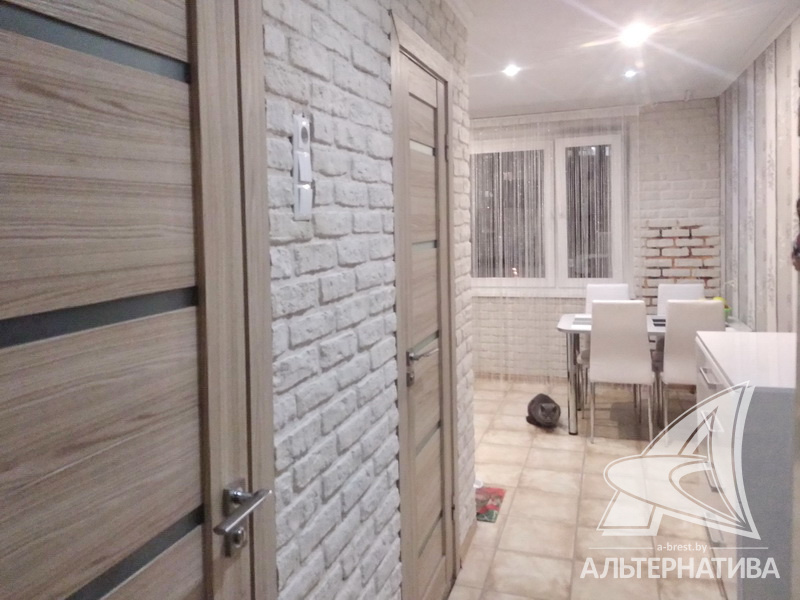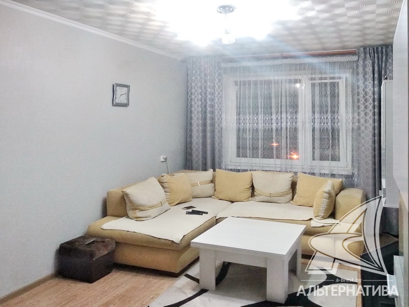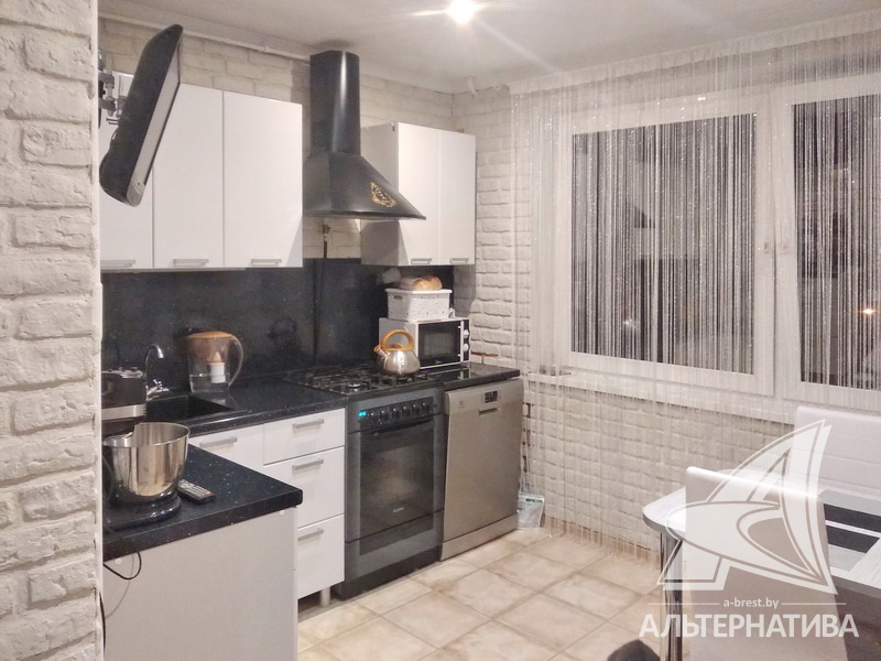 3-комнатная квартира, г. Брест, ул. Вульковская, 1996 г.п., 5 / 9 панель, 74,0 / 69,4 / 40,6 / 9,1, санузел раздельный, две лоджии застеклены, стеклопакеты, межкомнатные двери - массив, входная дверь металлическая, потолки - снежка и натяжные, комбинированные, полы - ламинат (положен на ДСП), стены оклеены обоями, отделка камнем, в санузле современная плитка, заменена сантехника, заменен полотенцесушитель, акриловая ванна, заменены сантехнические трубы, телефон, домофон. Встроенный кухонный гарнитур, вытяжка, посудомоечная машина. Шкаф-купе в прихожей, корпусная мебель в комнате, диван. Остальная мебель по договоренности. Квартира с хорошим ремонтом. Квартира расположена на две стороны. Один пассажирский лифт. Во дворе игровая детская площадка, парковка для автомобилей.
