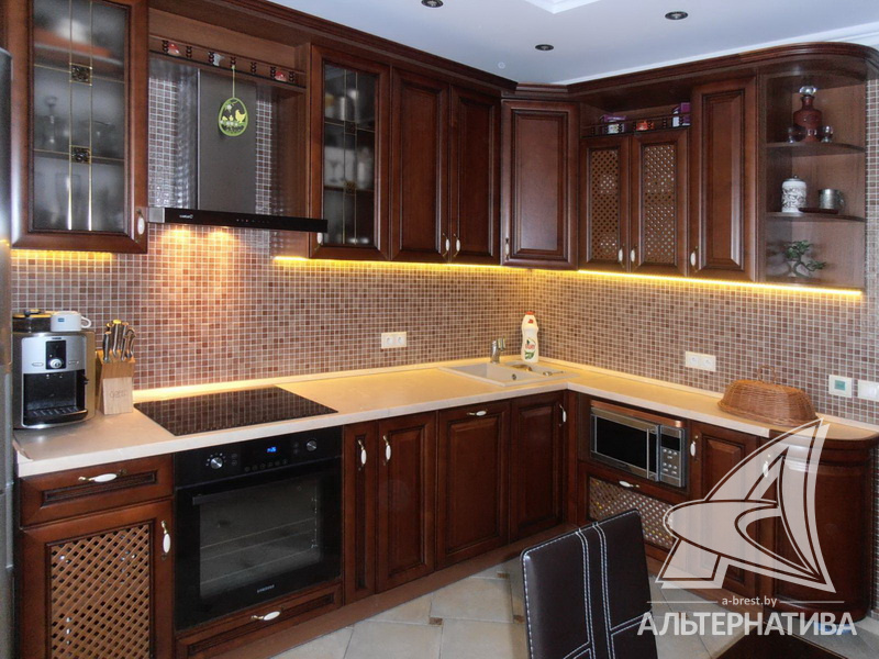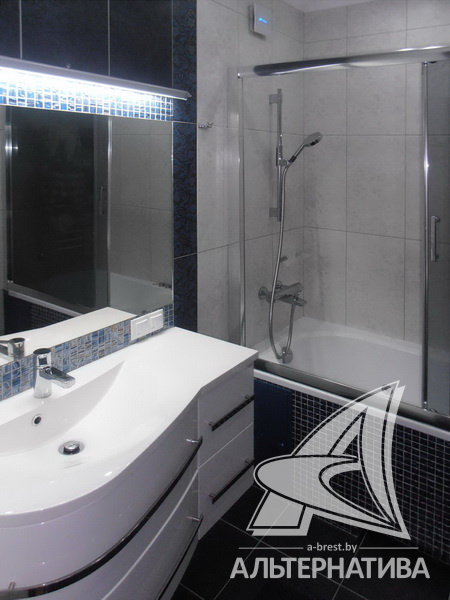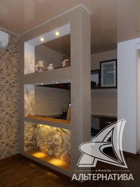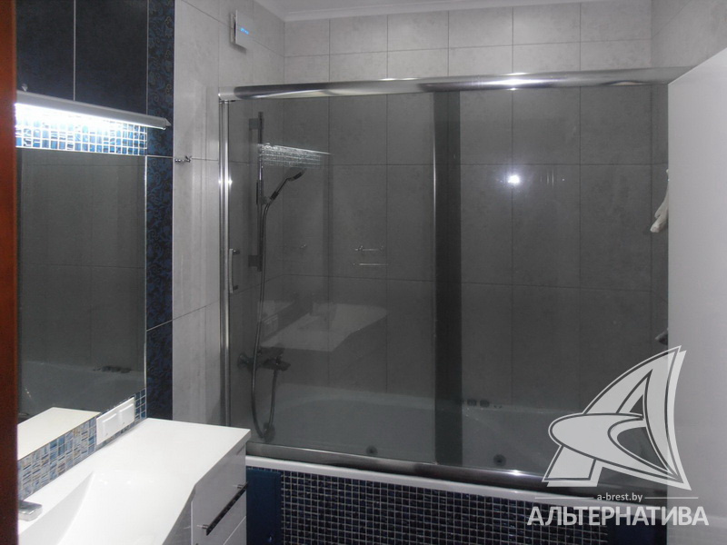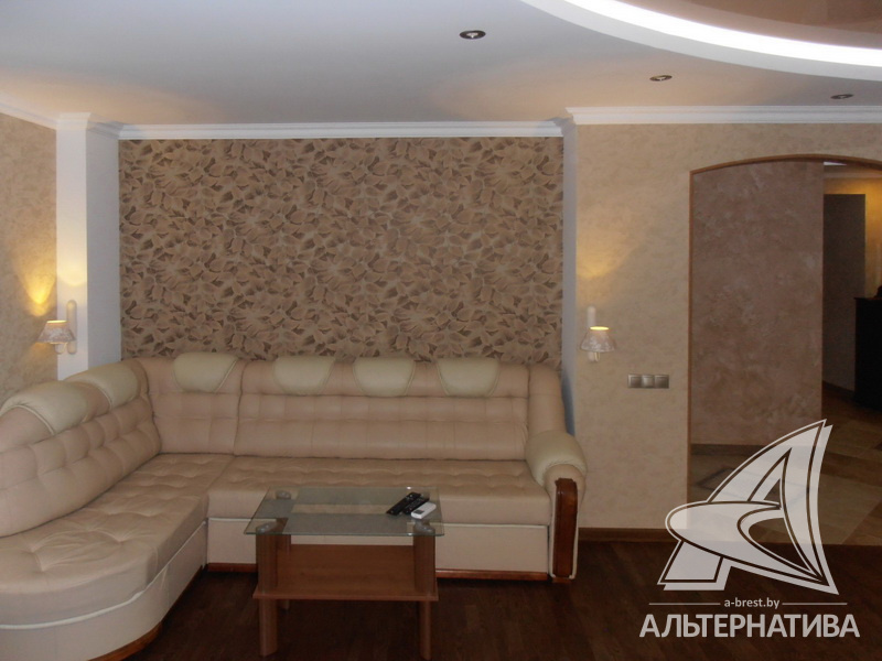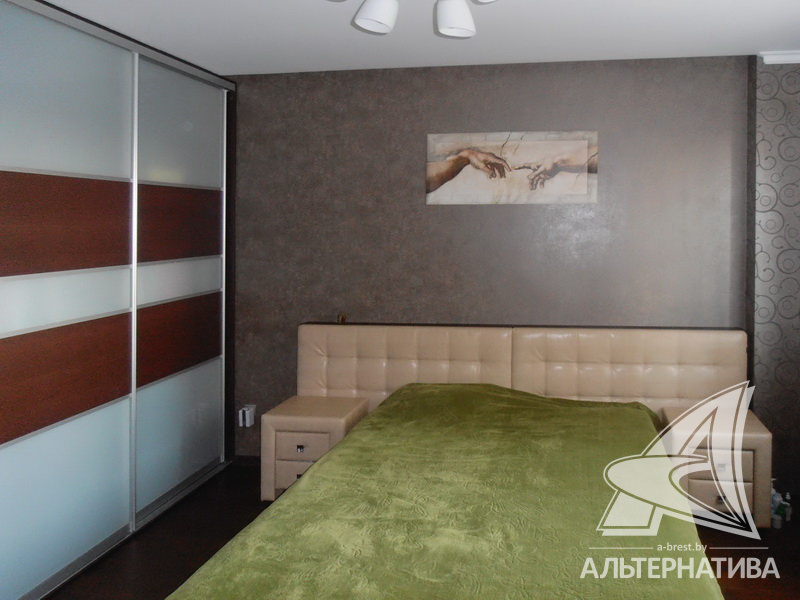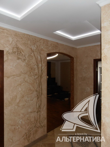 3-комнатная квартира, г. Брест, ул. Морозова, 2013 г.п., 10 / 17 ж/б каркас + блок, 87,1 / 84,4 / 52,2 / 9,9, санузел раздельный, балкон застеклен, стеклопакеты, межкомнатные двери - массив, входная дверь металлическая, многоуровневые потолки с интересной системой освещения, полы - паркетная доска, плитка (положены на стяжку), на стенах декоративная окраска, отделка камнем, фактурные обои, в санузле современная плитка, подогрев пола, инсталляция, телефон, домофон. Кухонный гарнитур. Остальная мебель по договоренности. Квартира с хорошим ремонтом. Чистый подъезд. Дом расположен в глубине двора.