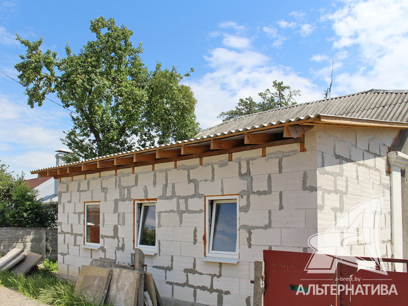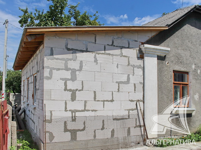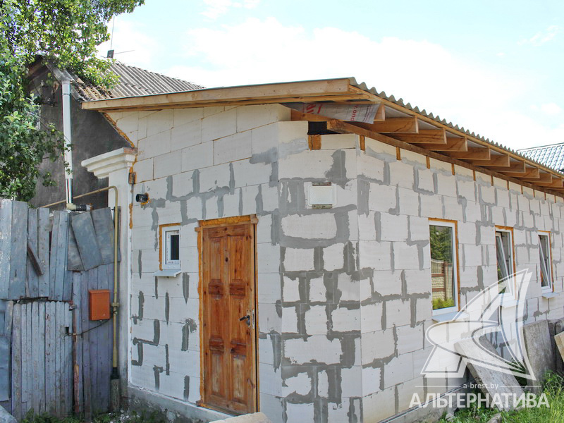 Стены: материал - шлакобетонный блок и газосиликатный блок. Кровля: шифер. Фундамент: ленточный монолитный; материал - бетон.