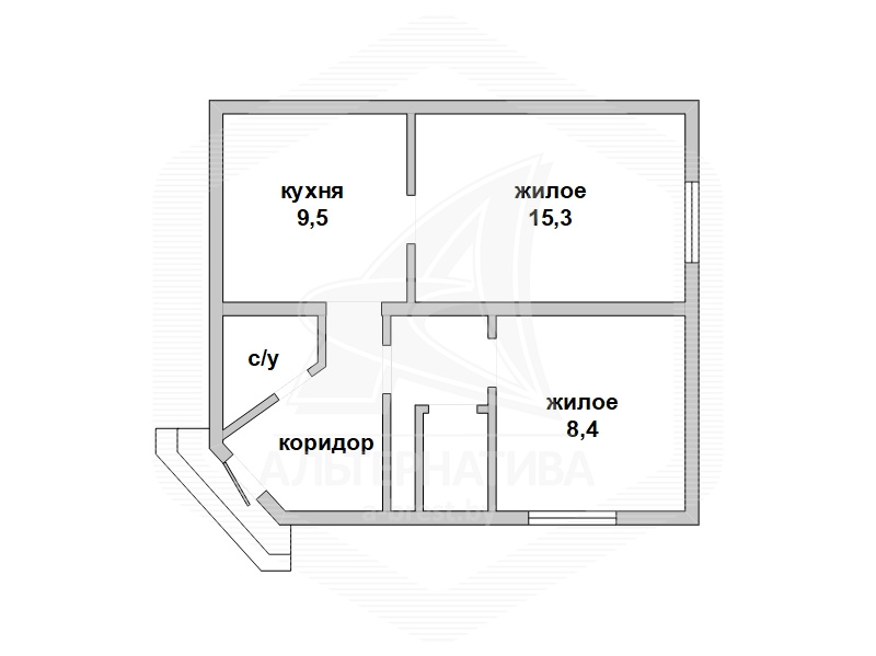 Квартира в блокированном жилом доме в г.Бресте. 1 этаж. Общ.СНБ - 24,6 кв.м, общ.- 24,6 кв.м, жил.- 15,3 кв.м, кух.- 9,5 кв.м. 1 комната.