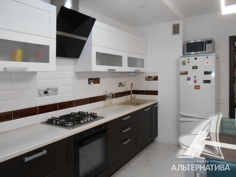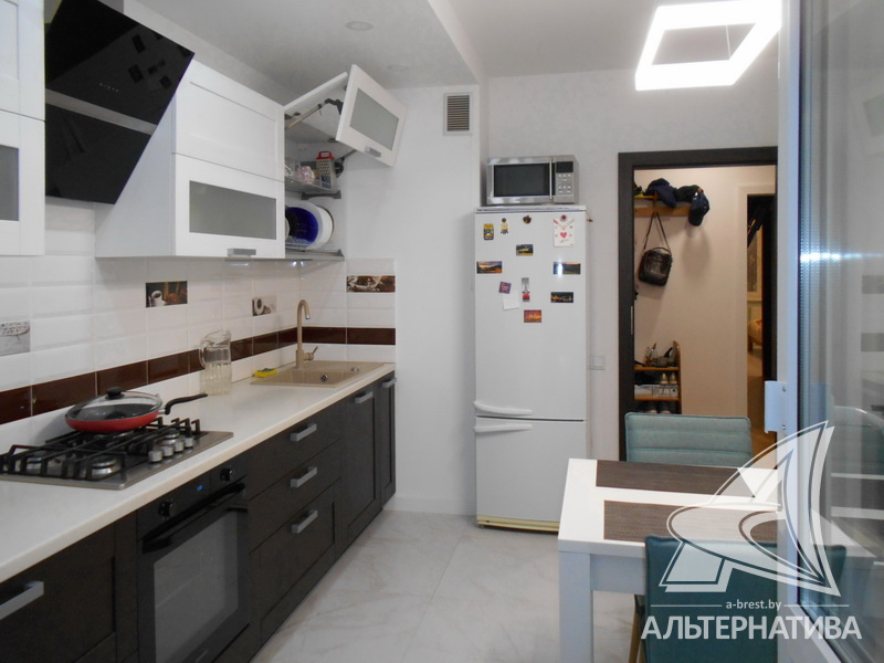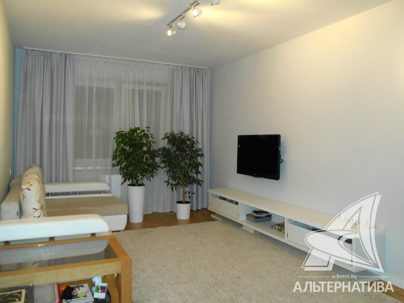 2-комнатная квартира, г. Брест, ул. Криштофовича, 2015 г.п., 4 / 10 панель, 64,9 / 63,2 / 34,0 / 10,5, санузел раздельный, лоджия застеклена, двухкамерные стеклопакеты, межкомнатные двери – шпон, входная дверь металлическая, потолки - снежка, двухуровневые (кухня), полы - паркетная доска и плитка (кухня), стены ошпатлеваны, отделка камнем, в санузле современная плитка, душевой блок, телефон, домофон. Кухонный гарнитур, бытовая техника. Шкаф-купе. Остальная мебель по договоренности. Квартира с хорошим ремонтом. Квартира расположена на две стороны. Чистый подъезд. Один грузопассажирский лифт. Тамбур на две квартиры. Дом оборудован пандусом. Во дворе игровая детская площадка, парковка для автомобилей.