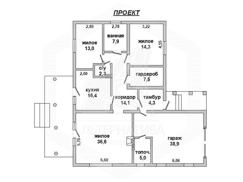 Коробка дачного домика жилого типа в черте г.Бреста. 2019 г.п. 1 этаж. Общ.СНБ - 168,3 кв.м, общ.- 160,3 кв.м, жил.- 63,9 кв.м, кух.- 16,4 кв.м. 3 комнаты.