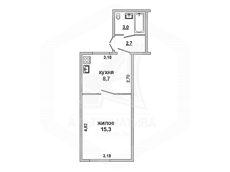 | Жилая площадь | 15.3 м² |