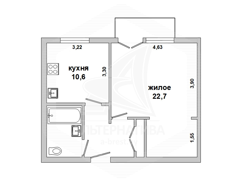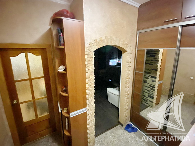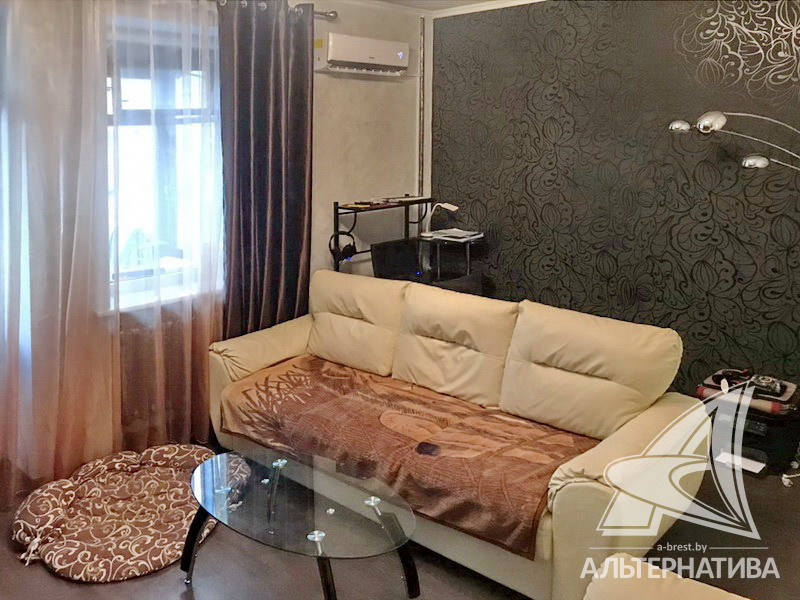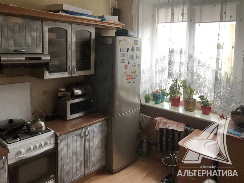 1-комнатная квартира, г. Брест, ул. Пушкинская, 1960 г.п., 4 / 4 кирпич, 43,5 / 42,7 / 22,7 / 10,9, санузел совмещенный, подвал, балкон, стеклопакеты, межкомнатные двери - массив, входные двери двойные - деревянная и металлическая, потолки - снежка, полы - ламинат и плитка (коридор), стены оклеены обоями, декоративная отделка штукатуркой, в санузле современная плитка, газовая колонка в ванной. Встроенный кухонный гарнитур, шкаф-купе. Квартира с хорошим ремонтом. Все окна выходят во двор. Капитальный ремонт дома 2009 г.
