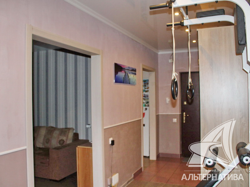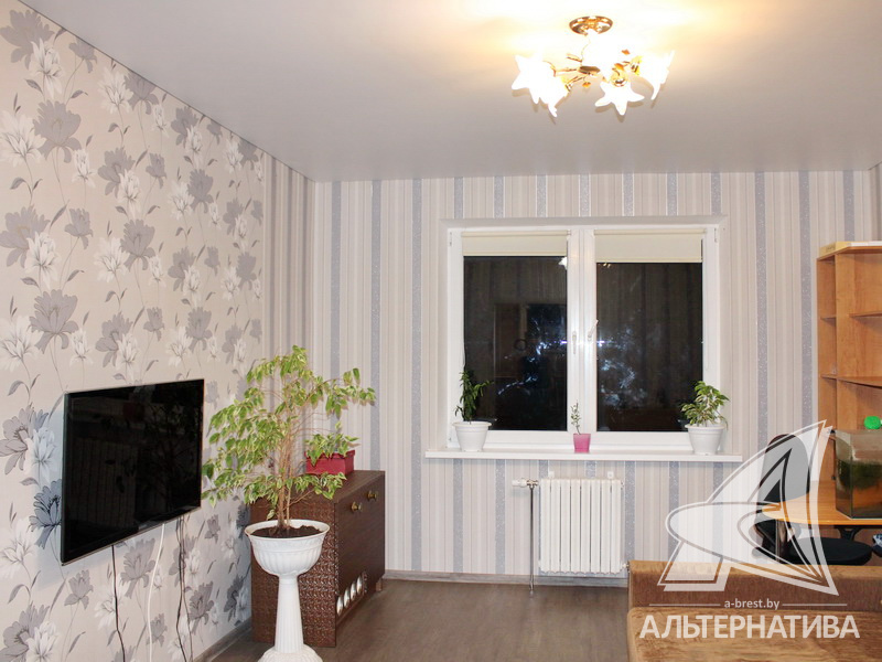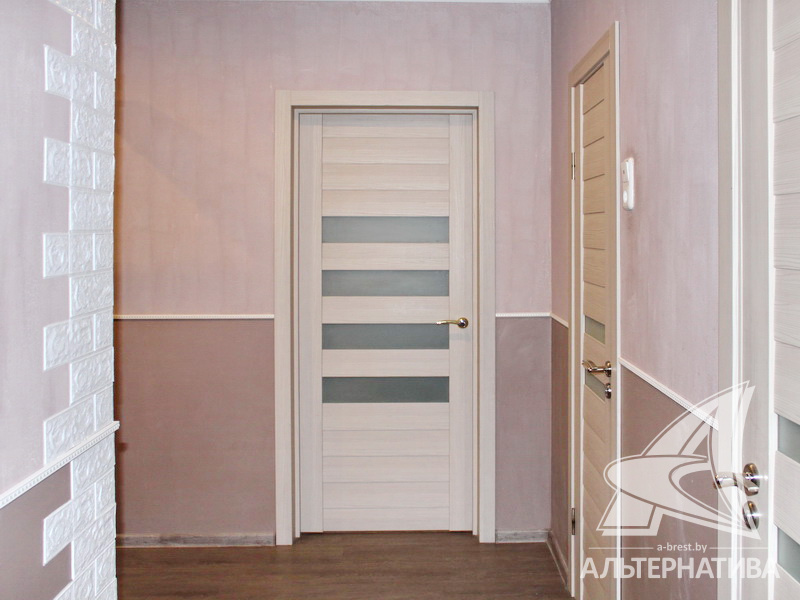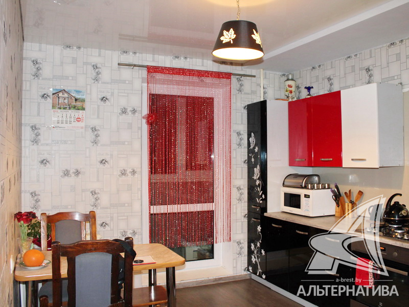 3-комнатная квартира, г. Брест, ул. Криштофовича, 2013 г.п., 5 / 10 панель, 79,3 / 74,4 / 45,3 / 10,5, санузел раздельный, две лоджии застеклены, стеклопакеты, межкомнатные двери – шпон, входная дверь металлическая, потолки - из гипсокартона, натяжные (2,62 м), полы - ламинат и плитка (положены на стяжку), на стенах обои и декоративная окраска, в санузле современная плитка, телефон, домофон. Кухонный гарнитур. Квартира с хорошим ремонтом. Квартира расположена на две стороны. Один грузопассажирский лифт. Тамбур на две квартиры.