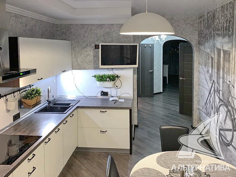 2-комнатная квартира, г. Брест, ул. Комсомольская, 2010 г.п., 6 / 6 кирпич, 81,1 / 75,6 / 39,7 / 13,5, санузел раздельный, две лоджии застеклены, потолки - 2,65 м, стеклопакеты, межкомнатные двери массив, потолки комбинированные, стены - фактурные обои, полы - ламинат, импортная плитка и сантехника, телефон, домофон. Корпусная и встроенная мебель, бытовая техника. Квартира на две стороны. В доме есть технический этаж. Возле дома своя закрытая территория. Квартира расположена в красивейшем месте Бреста с выходом на пешеходную улицу. В шаговой доступности детсады, школы, торговые центры, рестораны, бассейн, СПА салон, парк отдыха. Идеальное место для жизни и отдыха с детьми. Квартира с индивидуальными дизайнерскими решениями.