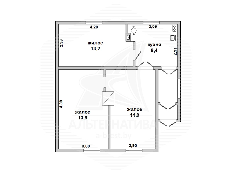 | Общая площадь | 49.5 м² |