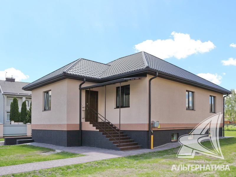 Дом под чистовую отделку в г.Бресте. 2020 г.п. 1 этаж, цокольный этаж. Общ.- 128,5 кв.м, жил.- 69,1 кв.м, кух.- 18,5 кв.м. 4 комнаты, потолки - 2,8 м.