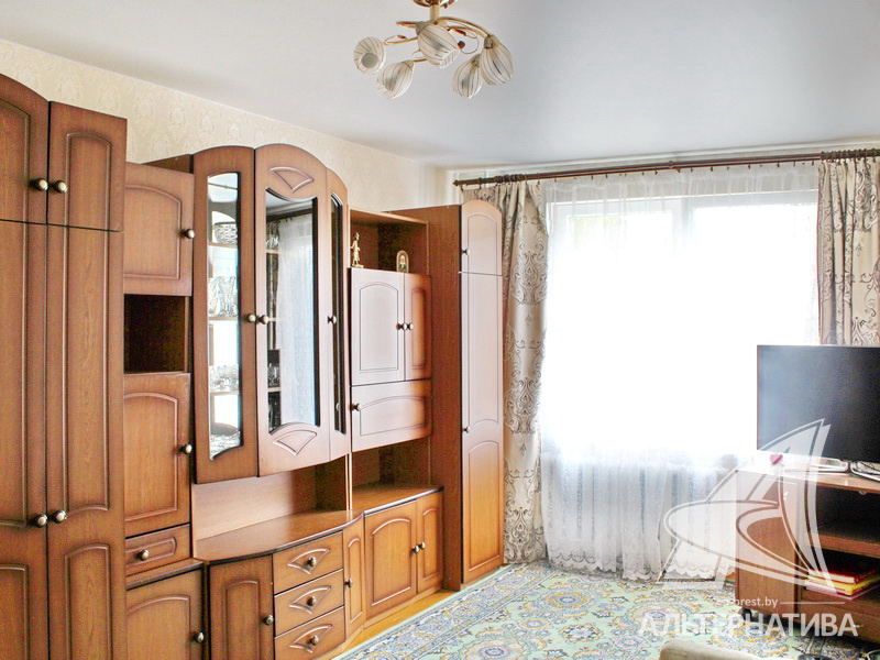2-комнатная квартира, г. Брест, ул. Рокоссовского, 1985 г.п., 3 / 5 панель, 48,2 / 47,3 / 27,9 / 9,3, санузел раздельный, балкон, двухкамерные стеклопакеты, межкомнатные двери - массив (ясень), входная дверь металлическая, потолки - снежка (кухня), из гипсокартона (спальня, прихожая), натяжные (сатин) в зале (2,55 м), полы - ДСП и ламинат (кухня) (положены на доску), стены оклеены обоями, в санузле современная плитка, заменены сантехнические трубы (пластик), телефон, домофон. Кухонный гарнитур, шкаф-купе, корпусная мебель. Квартира в жилом состоянии. Квартира расположена на две стороны. Чистый подъезд.