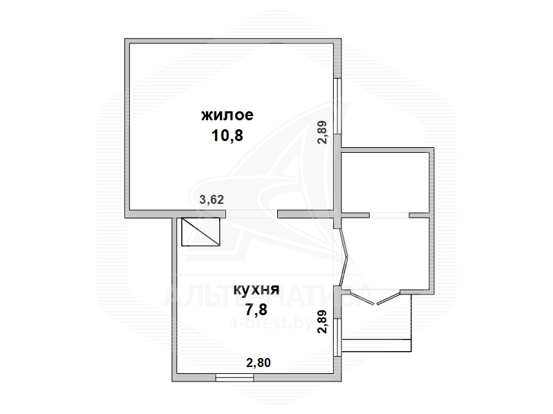 Квартира в блокированном жилом доме в г.Бресте. 1958 г.п. 1 этаж. Общ.СНБ - 22,4 кв.м, общ.- 18,6 кв.м, жил.- 10,8 кв.м, кух.- 7,8 кв.м. 1 комната.