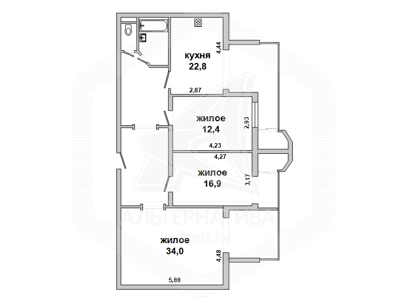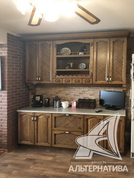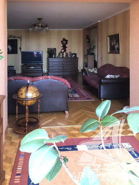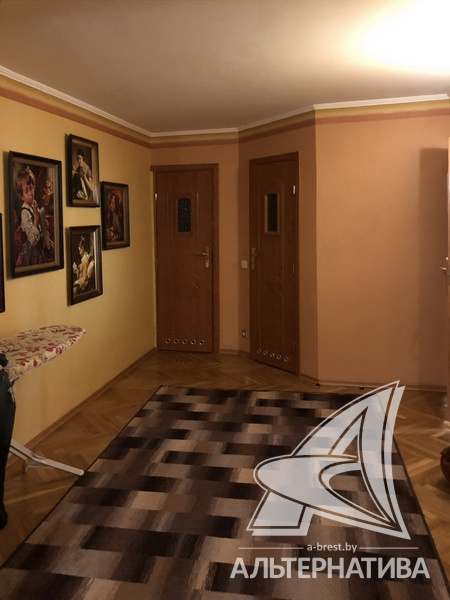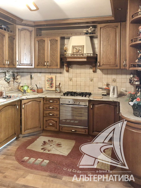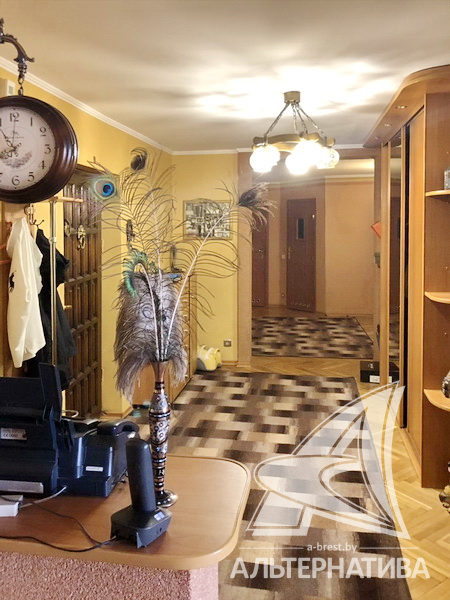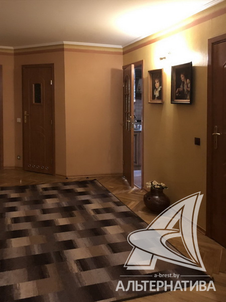 3-комнатная квартира, г. Брест, ул. Мошенского, 1995 г.п., 4 / 5 кирпич, 117,7 / 117,7 / 63,3 / 22,8, санузел раздельный, подвал, деревянные стеклопакеты, межкомнатные двери – шпон, входные двери двойные - металлическая и деревянная, одноуровневые потолки - снежка (2,50 м), полы - паркет и ламинат, с подогревом - на кухне, стены оклеены обоями, в санузле современная плитка, телефон, домофон. Встроенный кухонный гарнитур (массив - дуб), бытовая техника: газовая варочная поверхность, электрический духовой шкаф, вытяжка, посудомоечная машина. Три шкафа-купе, спальный гарнитур (Италия), кровать, шкаф, комод с зеркалом (массив). Квартира с хорошим ремонтом. Чистый подъезд.