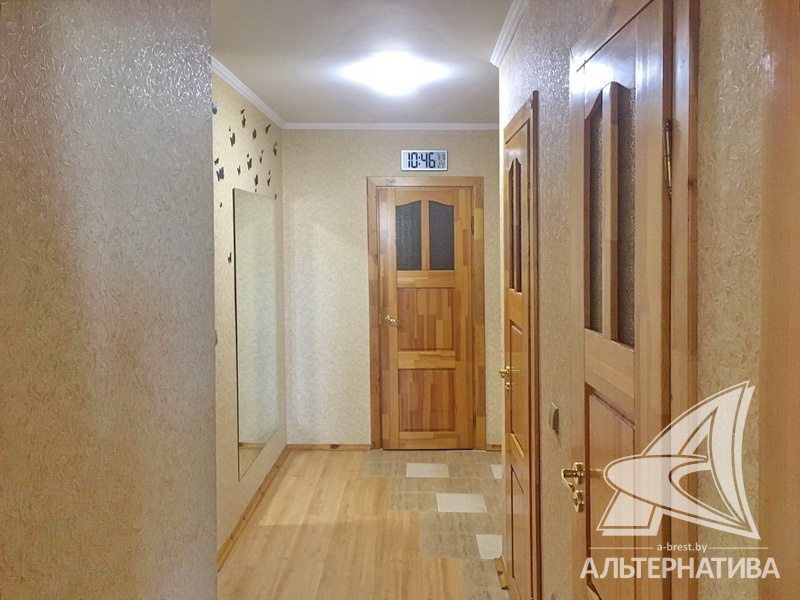 2-комнатная квартира, г. Брест, ул. Московская, 2004 г.п., 5 / 6 блок, 63,9 / 59,6 / 30,3 / 8,2, санузел раздельный, подвал, лоджия застеклена, деревянные стеклопакеты, межкомнатные двери - массив, входная дверь металлическая, натяжные потолки (сатин) (2,51 м), полы - ламинат и плитка, стены оклеены обоями, в санузле современная плитка, чугунная ванна, телефон, домофон. Встроенный кухонный гарнитур, две гардеробные. Квартира с хорошим ремонтом. Квартира расположена на две стороны. Чистый подъезд.