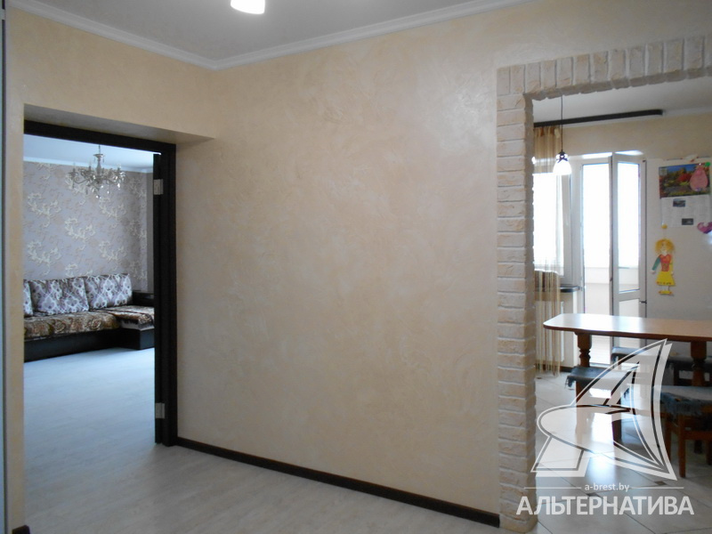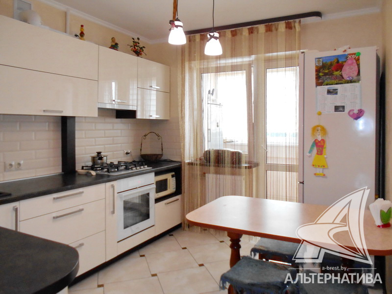 3-комнатная квартира, г. Брест, ул. Московская, 1996 г.п., 3 / 6 кирпич, 76,6 / 72,3 / 44,5 / 9,2, санузел раздельный, подвал, лоджия застеклена, двухкамерные стеклопакеты, межкомнатные двери – шпон, потолки - снежка, полы - ламинат и плитка (положены на стяжку), на стенах декоративная отделка венецианской штукатуркой, камнем, в санузле современная плитка, заменена сантехника, заменен полотенцесушитель, ванна, заменены сантехнические трубы, телефон, домофон. Кухонный гарнитур, варочная поверхность, духовой шкаф, вытяжка, обеденная группа. Шкаф-купе, гардеробная. Остальная мебель по договоренности. Квартира с хорошим ремонтом. Квартира расположена на две стороны. Все окна выходят во двор на зеленую зону. Чистый подъезд. Один пассажирский лифт. Во дворе игровая детская площадка.