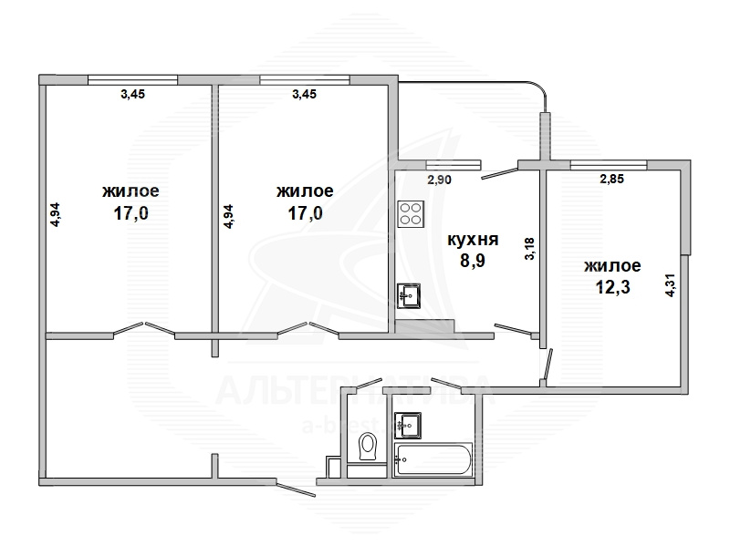 3-комнатная квартира, г. Брест, ул. Вульковская, 1998 г.п., 1 / 10 панель, 82,3 / 80,5 / 46,3 / 8,9, санузел раздельный, два подвала (один под лоджией), лоджия застеклена (двухкамерные стеклопакеты), межкомнатные двери - массив, входная дверь металлическая, деревянные стеклопакеты, потолки - снежка, полы - ламинат, стены оклеены обоями, отделка камнем, телефон, домофон. Шкаф-купе в прихожей, газовая плита, вытяжка. Квартира в жилом состоянии. Окна жилых комнат выходят во двор. Чистый подъезд. Тамбур на три квартиры. высокий цоколь. Во дворе парковка для автомобилей.